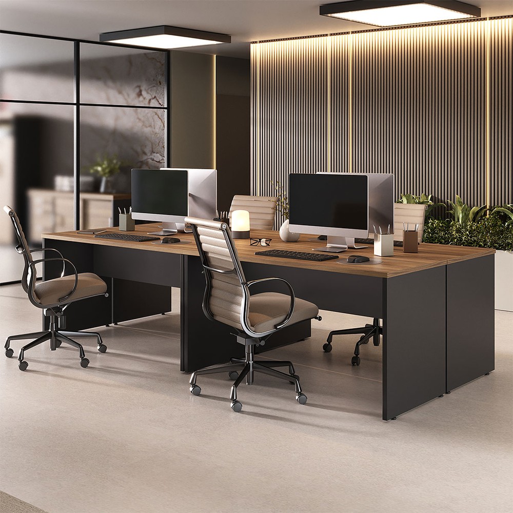 Mesa para Escritório Lineare Nogal/Preto - Artany Móveis