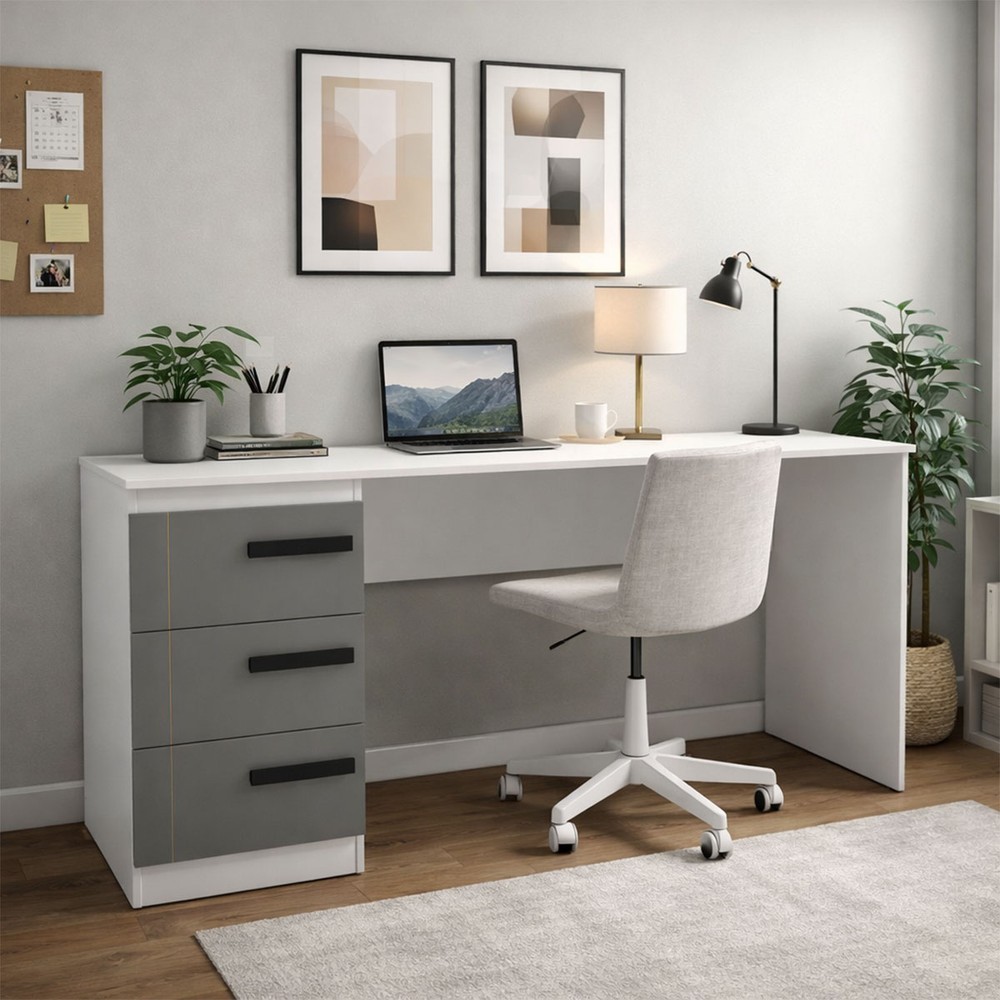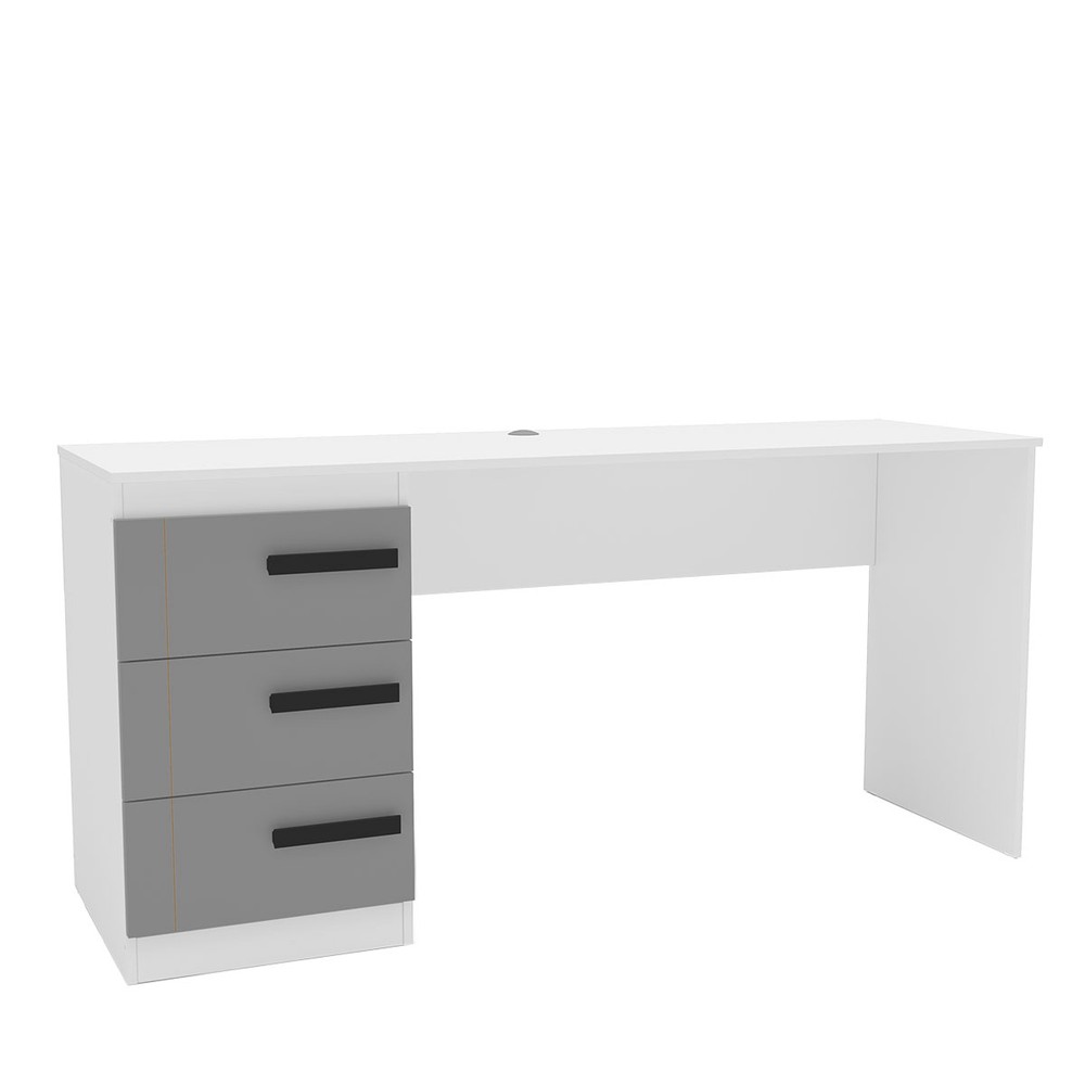 Mesa para Escritório Lisboa 3 Gavetas Cinza/Branco - Politorno