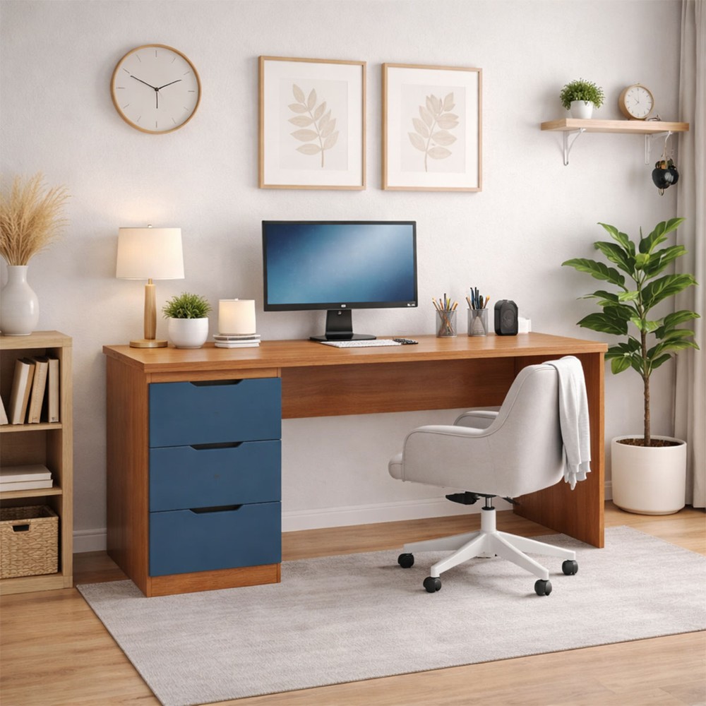 Mesa para Escritório Madri 3 Gavetas Azul/Freijó - Politorno
