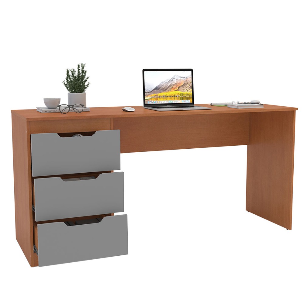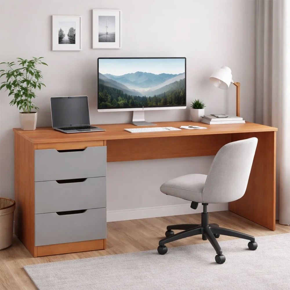 Mesa para Escritório Madri 3 Gavetas Cinza/Freijó - Politorno