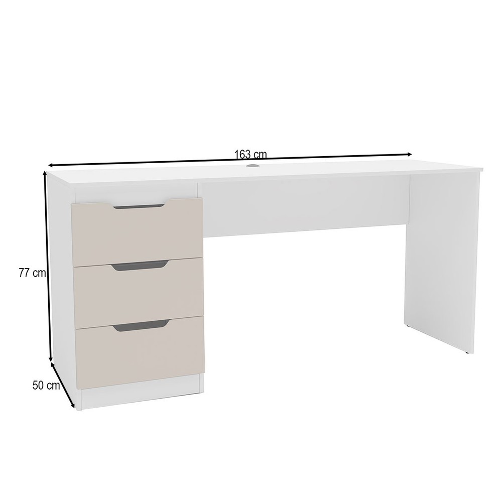 Mesa para Escritório Madri 3 Gavetas Creme/Branco - Politorno