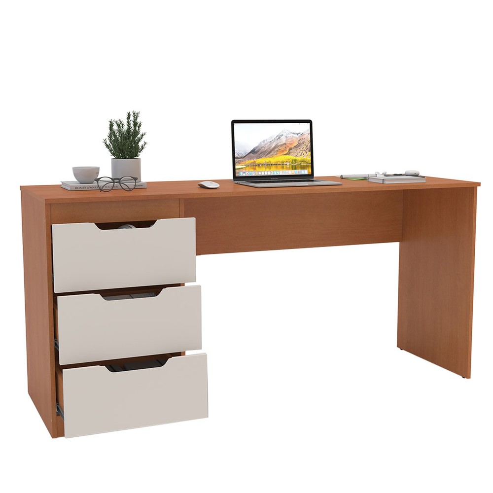 Mesa para Escritório Madri 3 Gavetas Creme/Freijó - Politorno