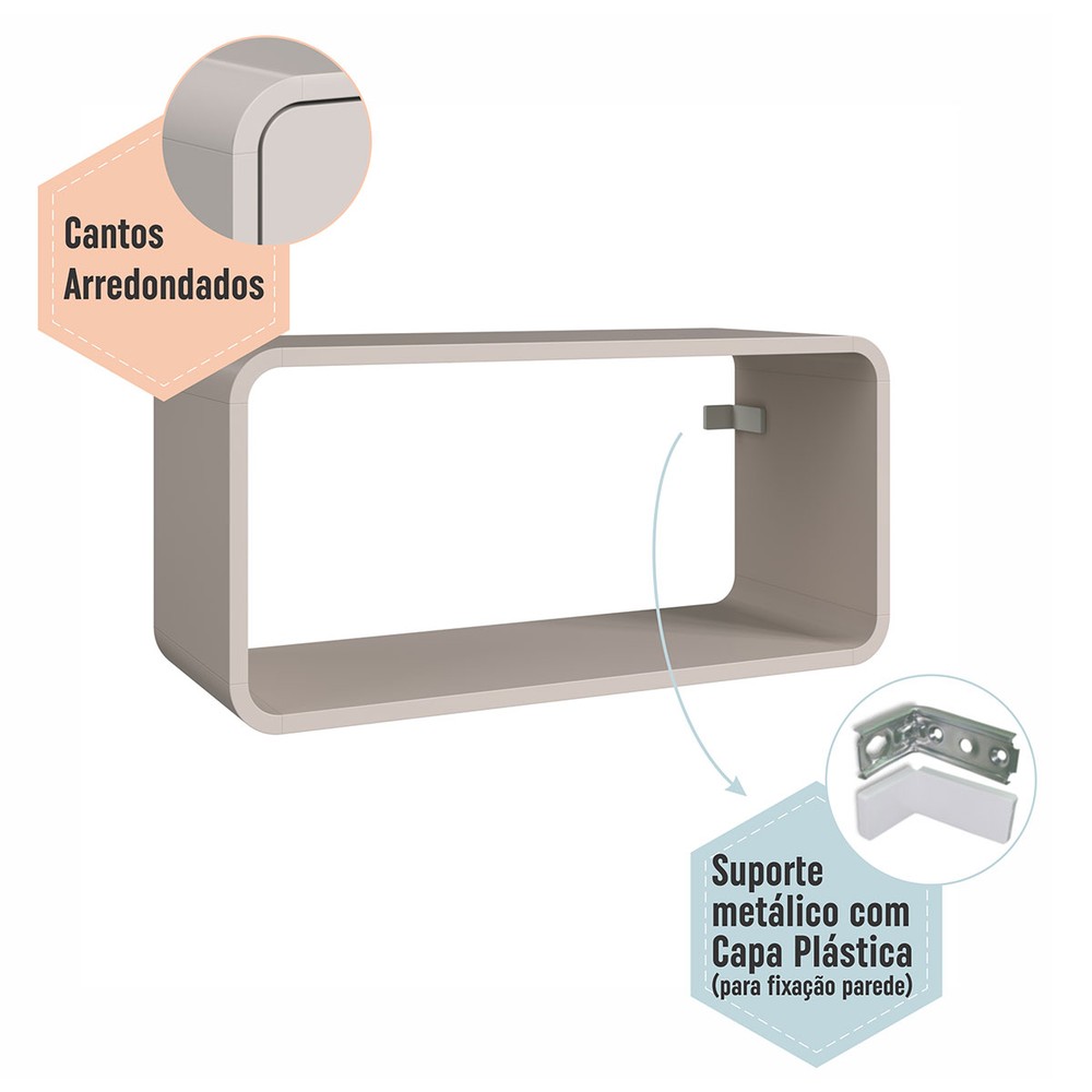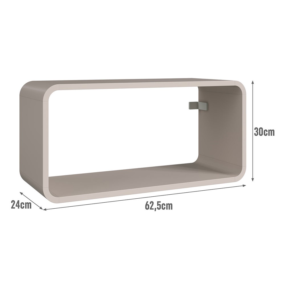 O(a) Nicho Organizador Duplo Curve Bege Dunas - Completa Móveis é produzido em MDP na escala de brilho Fosco, e possui um grau de dificuldade de montagem: Médio.