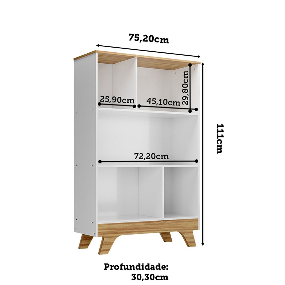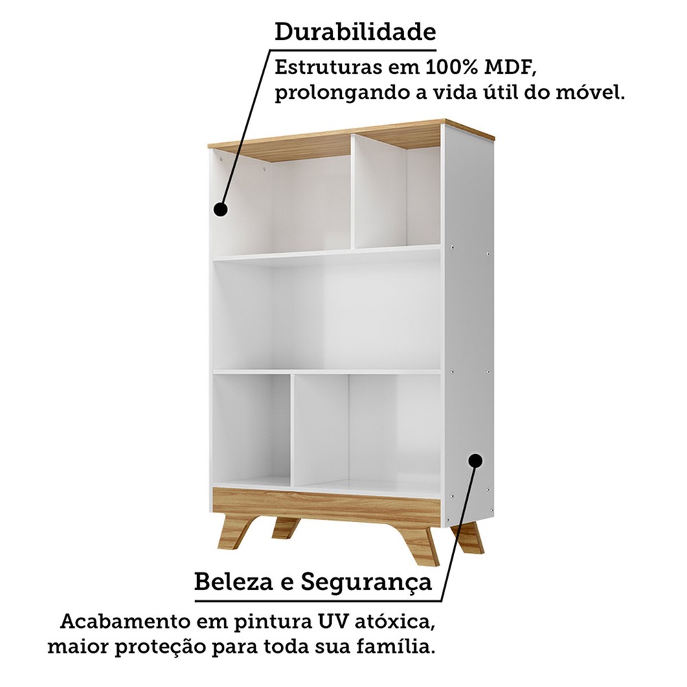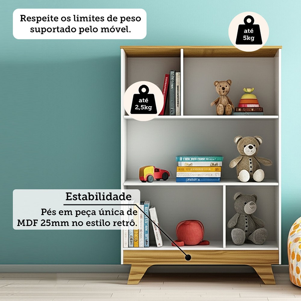 Nicho Organizador Retrô 5 Nichos 100% Mdf Branco Brilho/Amêndoa - Móveis Peroba