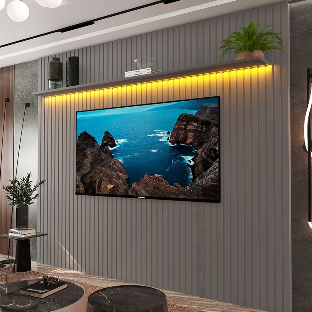 Painel para TV Até 85 Polegadas Nobre 1 Prateleira Ripado 100% Mdf Cinza - Gelius
