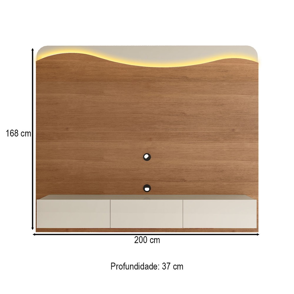 Painel para TV Até 86 Polegadas Lumiere 3 Gavetas com Led Cinamomo/Off White - Artely Móveis
