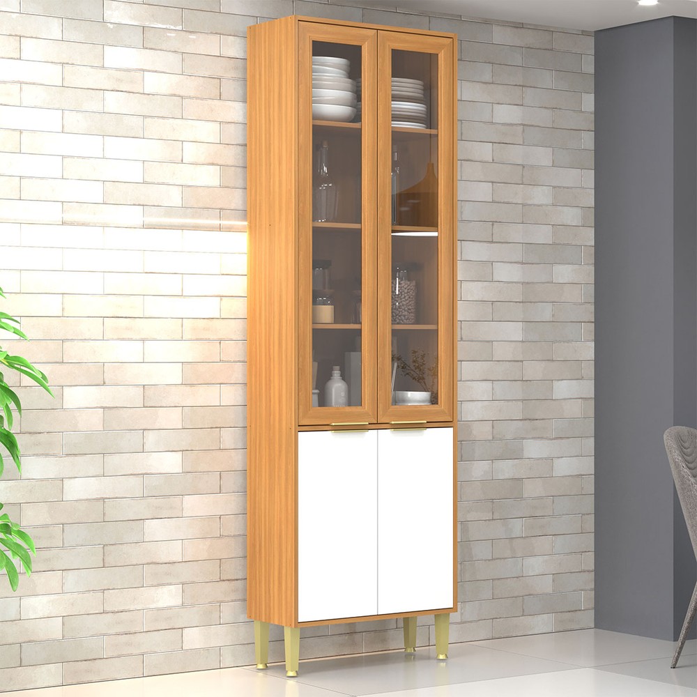 Paneleiro Domus 4 Portas com Vidro Nogal/Branco - Hecol Móveis