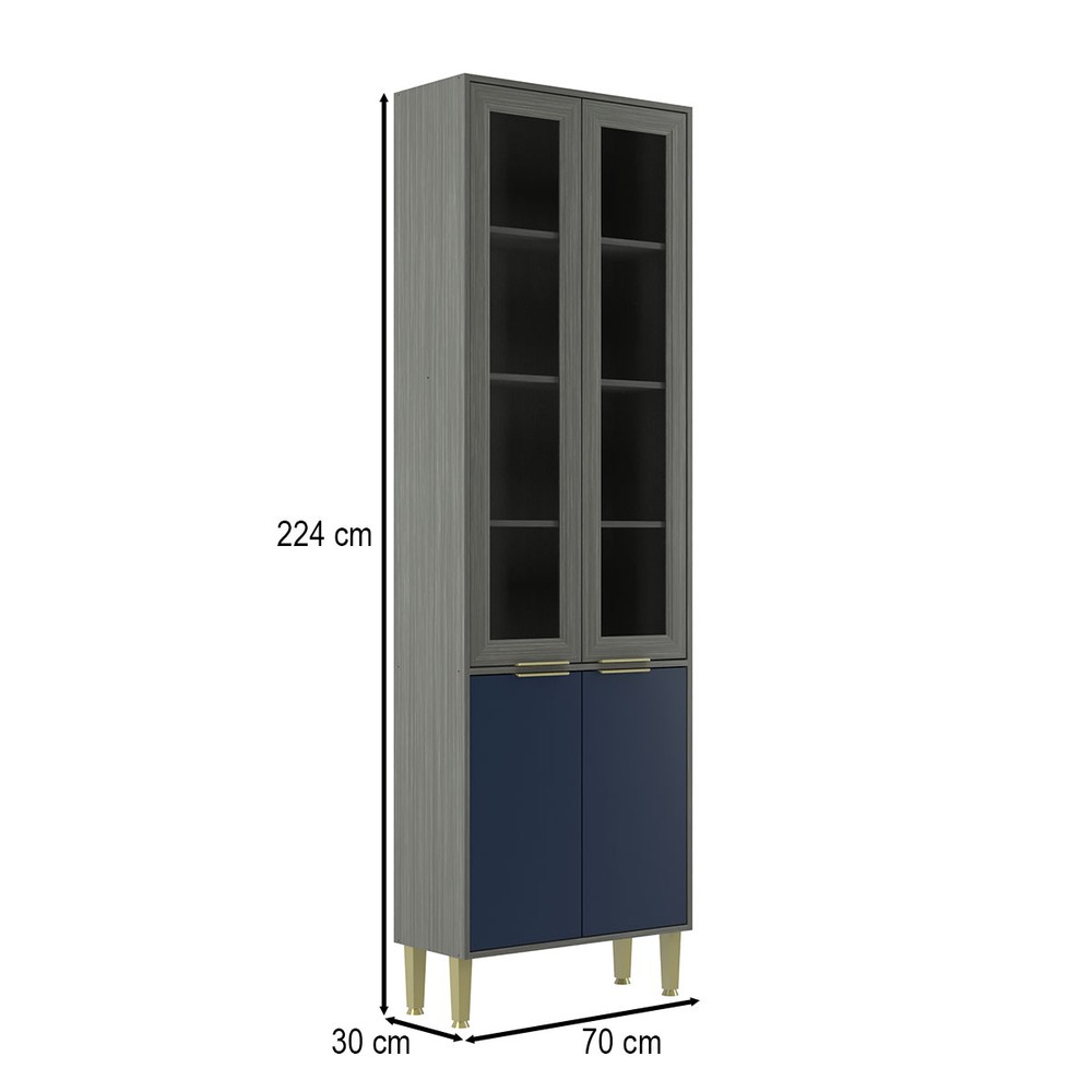Paneleiro Domus 4 Portas com Vidro Silver/Royal - Hecol Móveis