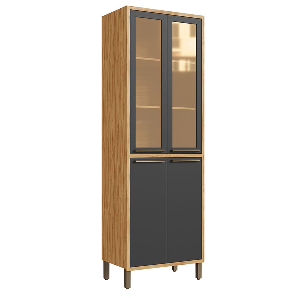 Paneleiro Syrah 4 Portas 4 Prateleiras com Vidro 100% Mdf Amêndoa/Chumbo - Rio Doce
