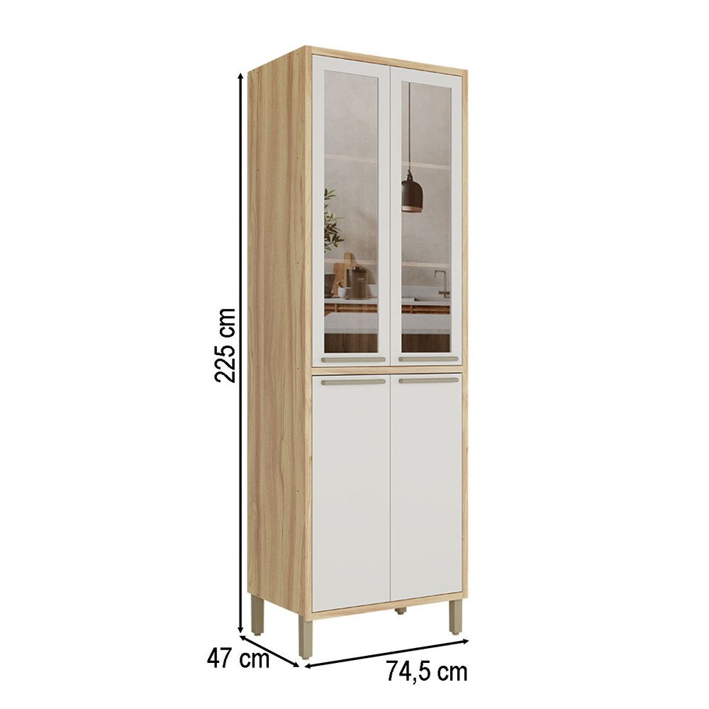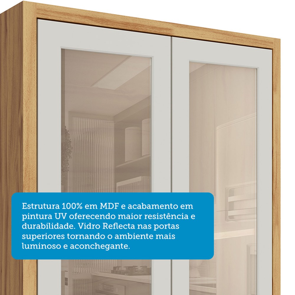 O(a) Paneleiro Syrah 4 Portas com Vidro 100% Mdf Amêndoa/Off White - Rio Doce é produzido em 100% MDF na escala de brilho Semi-Brilho, e possui um grau de dificuldade de montagem: Fácil.