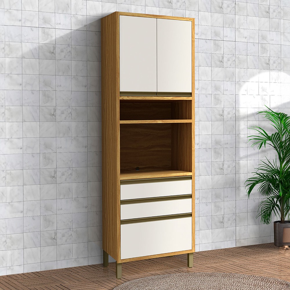 Paneleiro Tempranillo 3 Portas 2 Gavetas 100% Mdf Amêndoa/Off White - Rio Doce