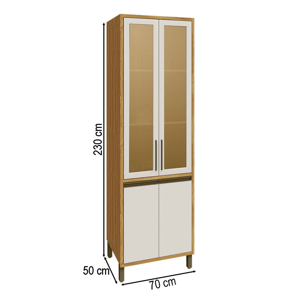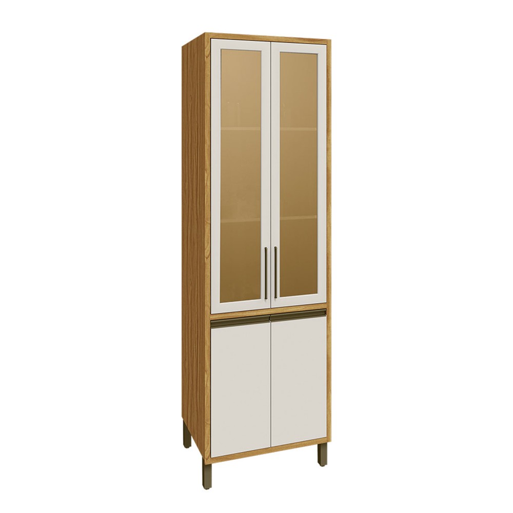 Paneleiro Tempranillo 4 Portas com Vidro Reflecta 100% Mdf Amêndoa/Off White - Rio Doce