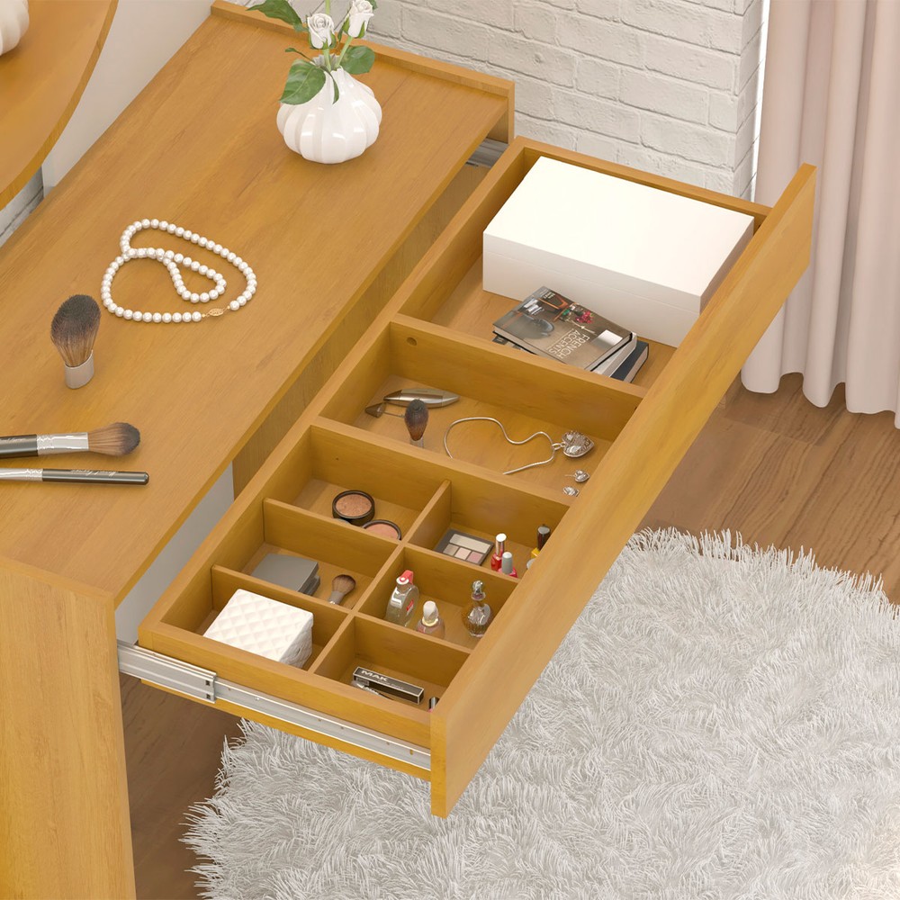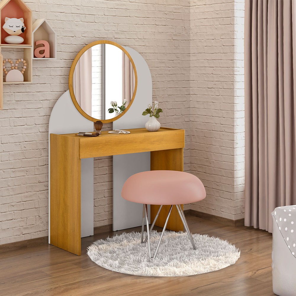 O(a) Penteadeira Camarim Wish 1 Gaveta com Espelho Branco/Naturalle - Móveis Bechara é produzido em MDP na escala de brilho Brilho, e possui um grau de dificuldade de montagem: Médio.