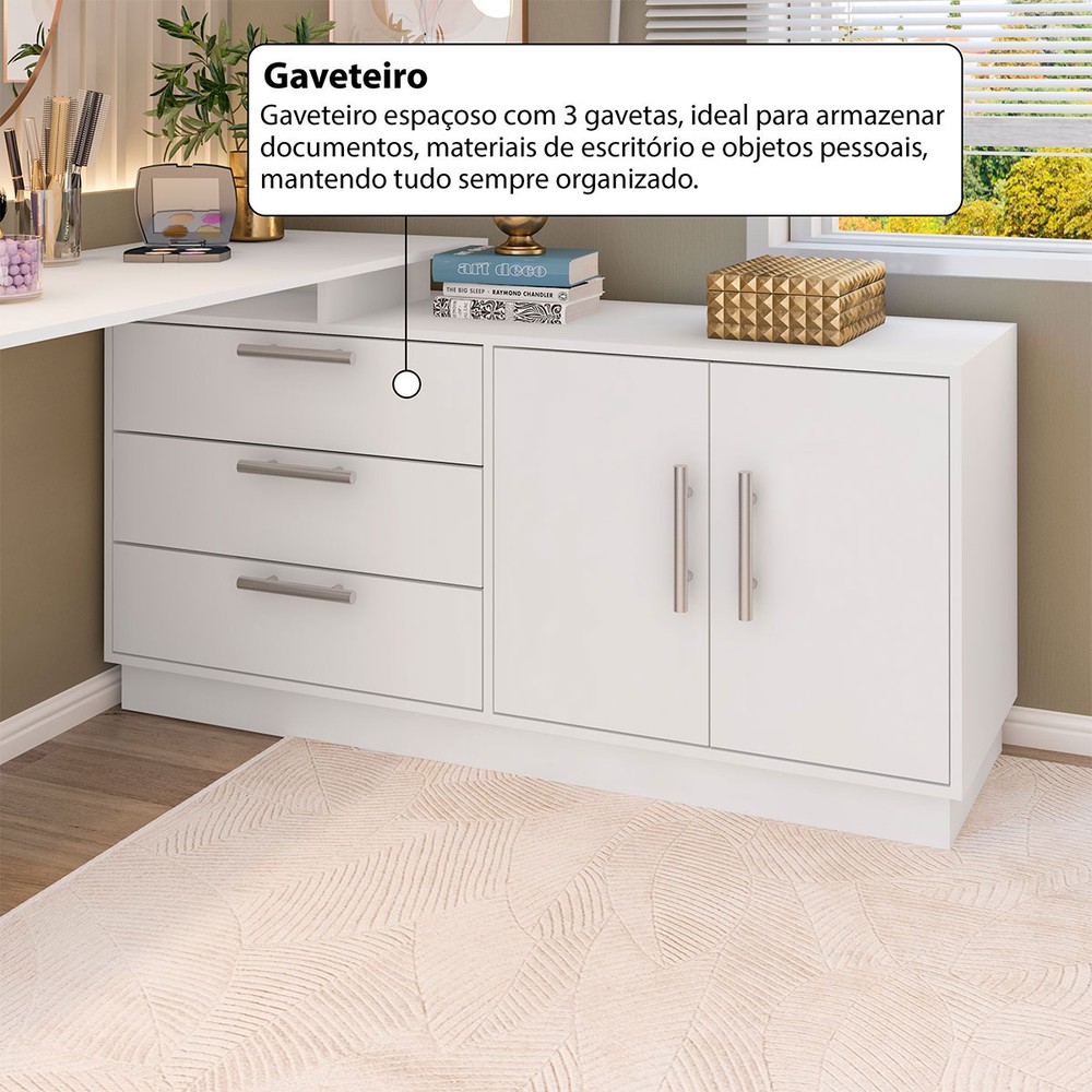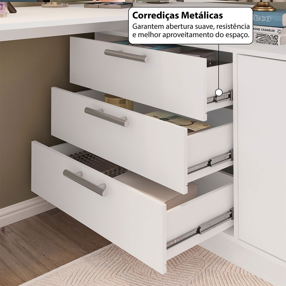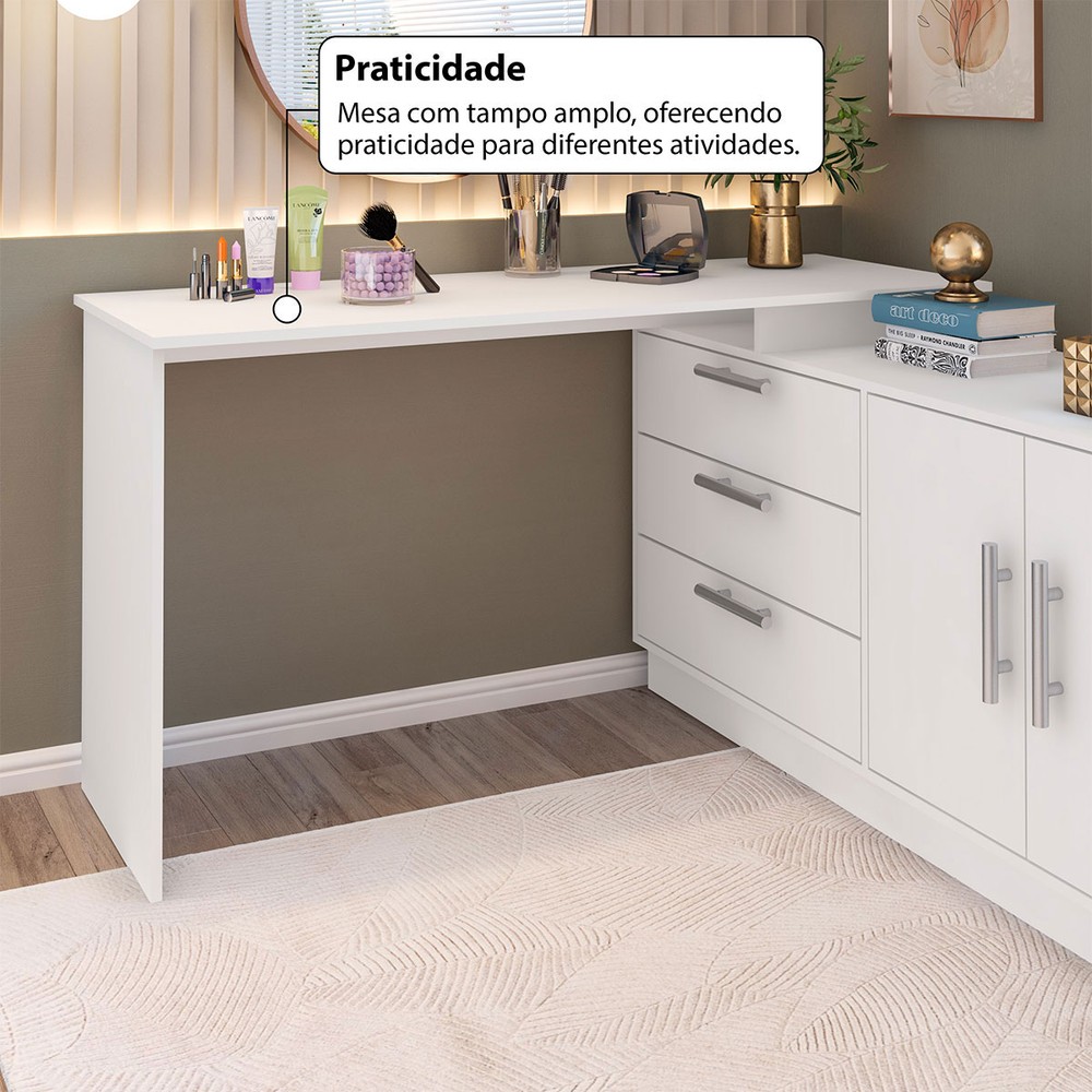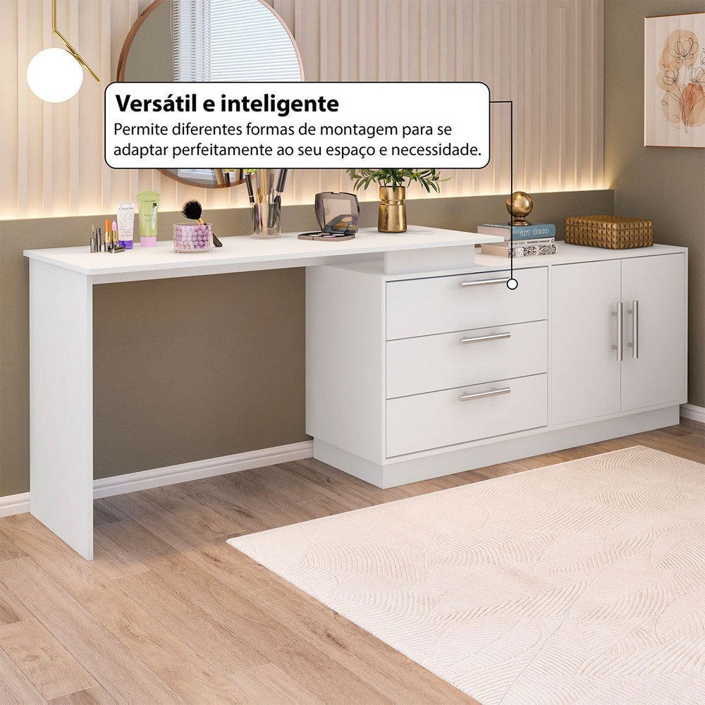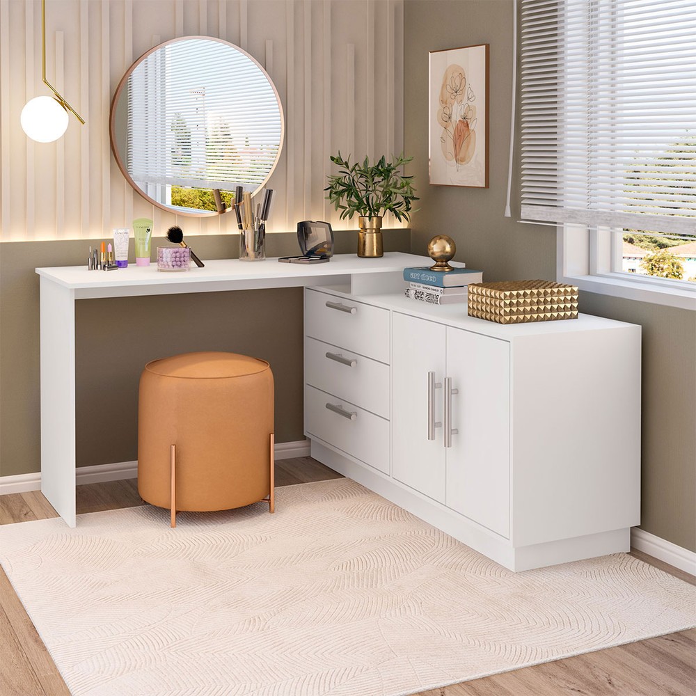 O(a) Penteadeira com Cômoda Rocher 2 Portas 3 Gavetas Branco - Pnr Móveis é produzido em MDP na escala de brilho Fosca com Textura, e possui um grau de dificuldade de montagem: Médio.
