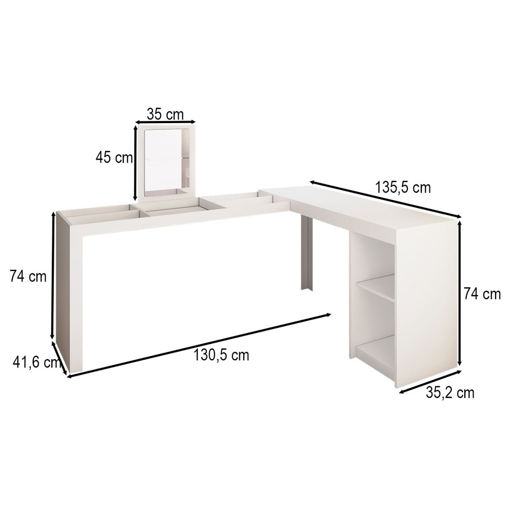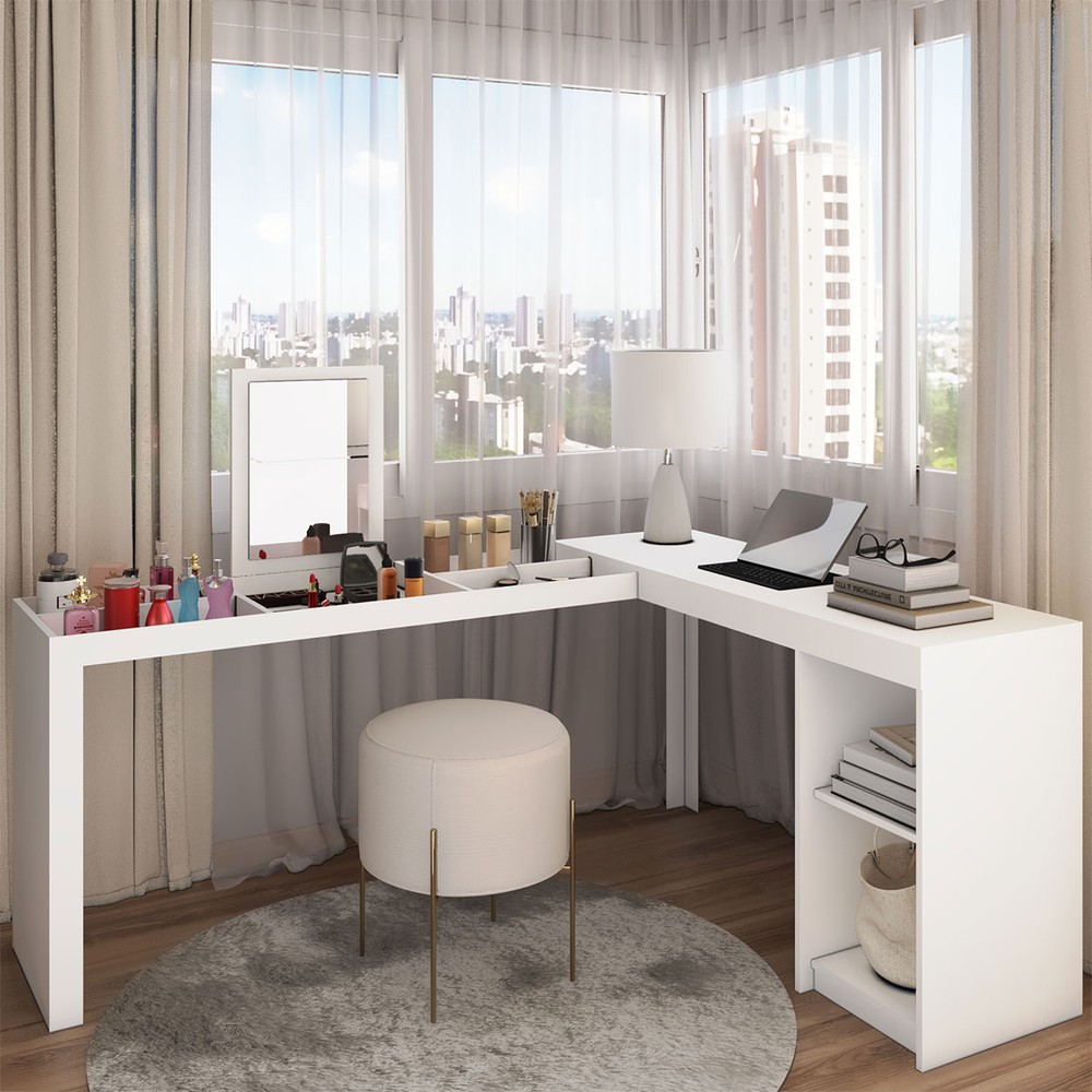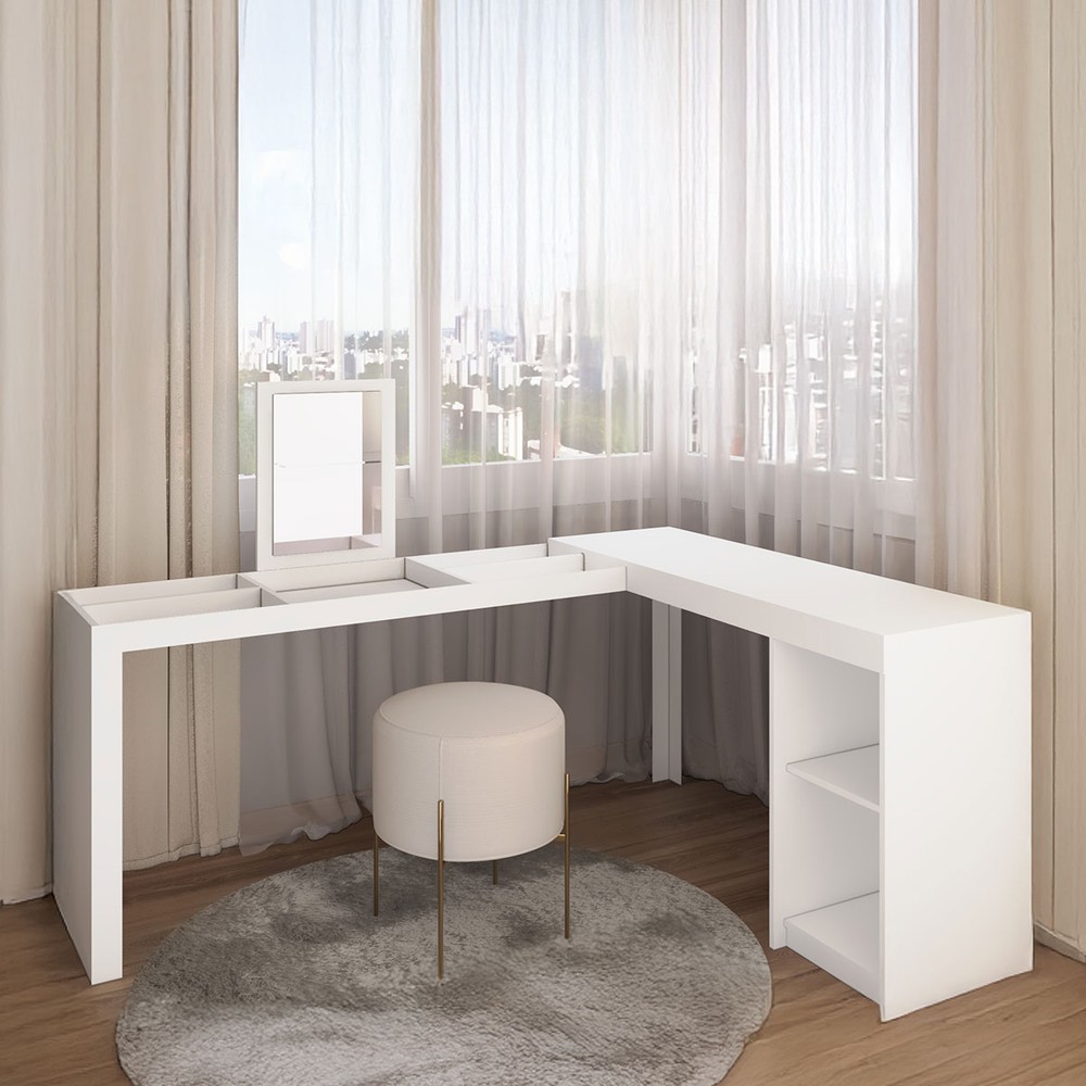O(a) Penteadeira Star 1 Prateleira com Espelho Branco Bpe - Brv é produzido em MDP na escala de brilho Fosco, e possui um grau de dificuldade de montagem: Médio.