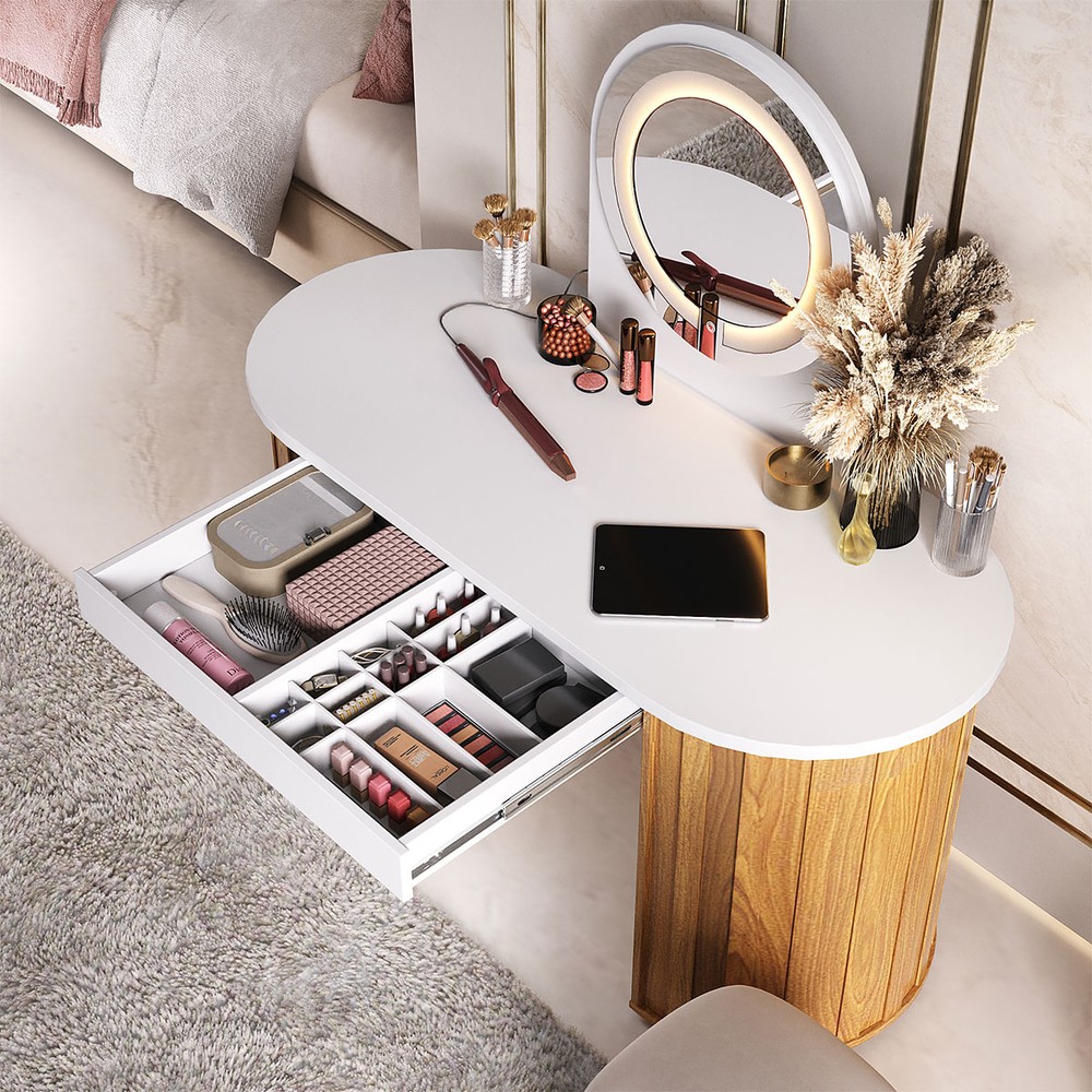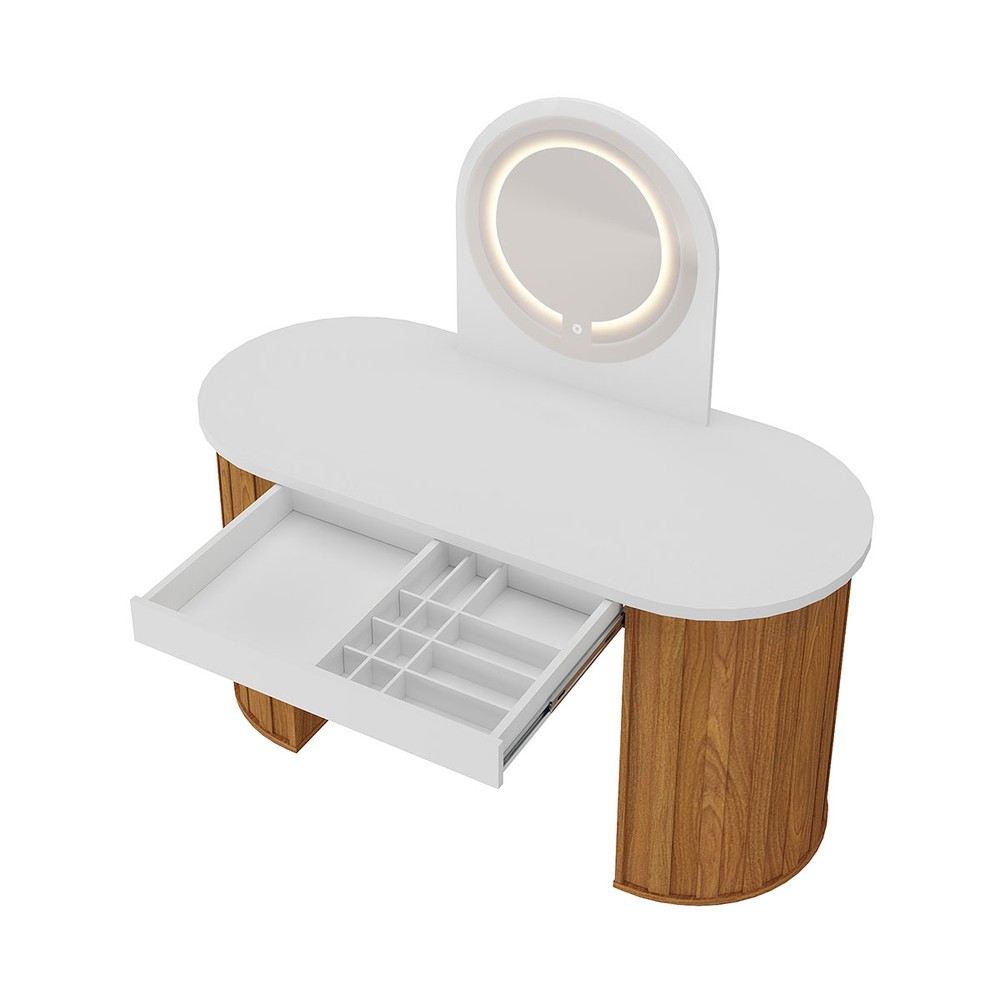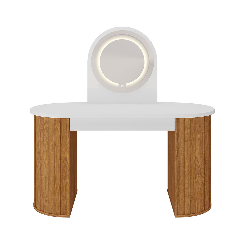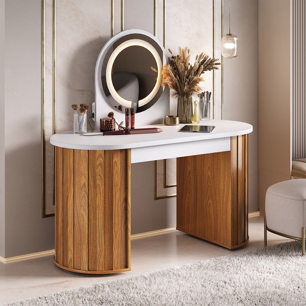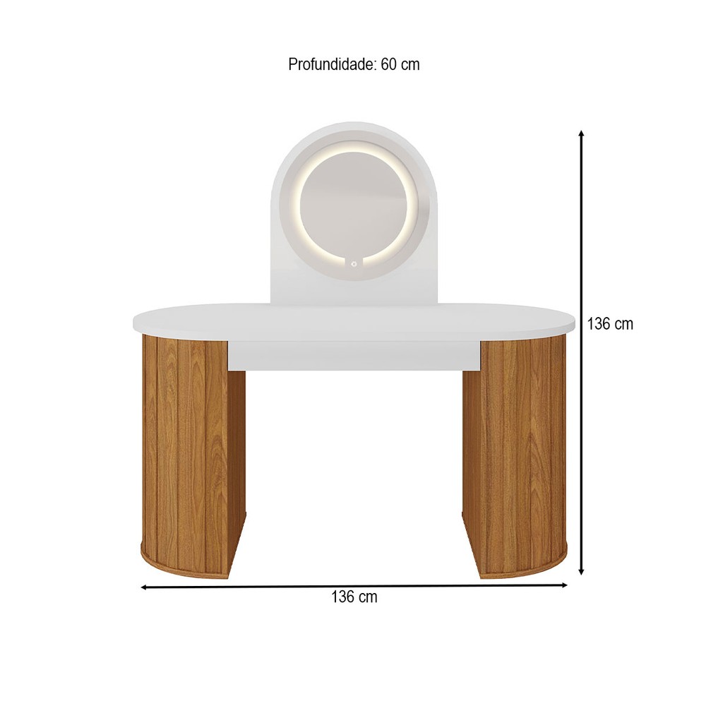 Penteadeira Glamour 1 Gaveta com Espelho e Led Branco/Freijó - Artany Móveis