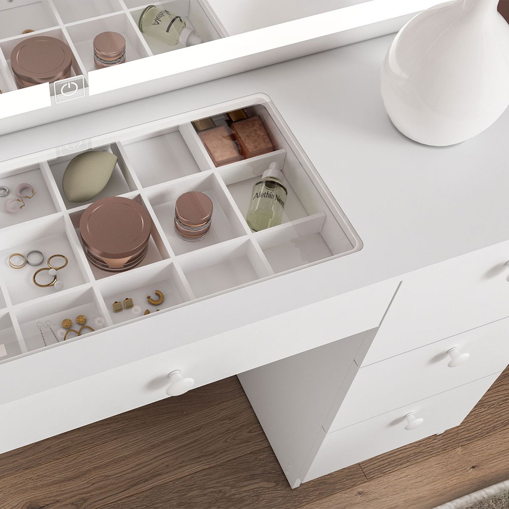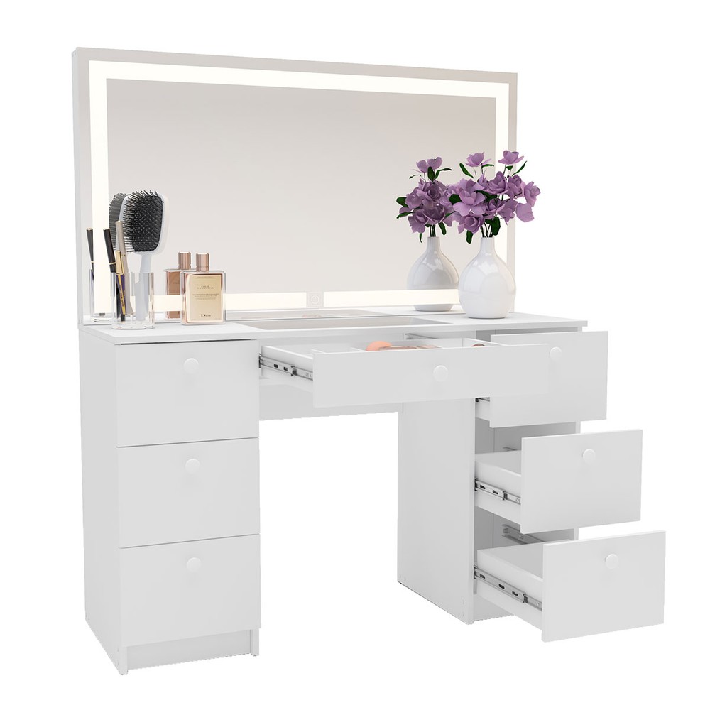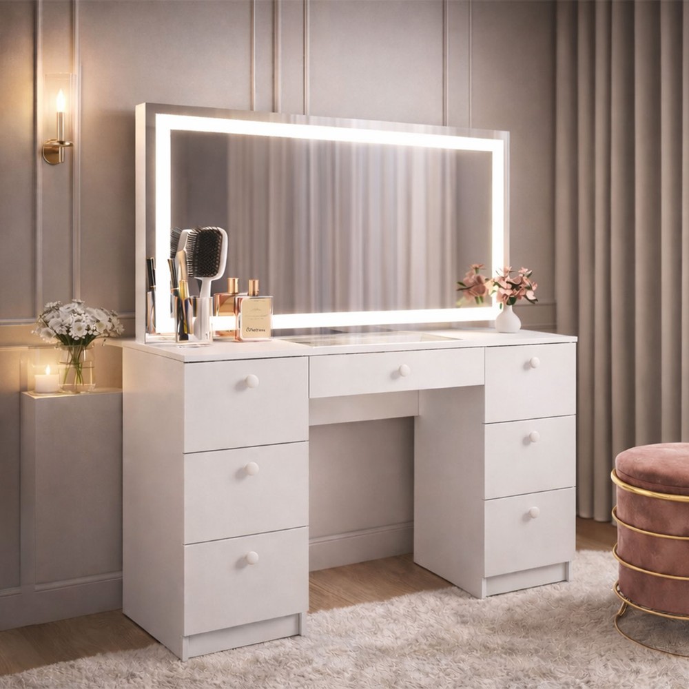 Penteadeira Iris 7 Gavetas com Espelho e Led Branco - Politorno