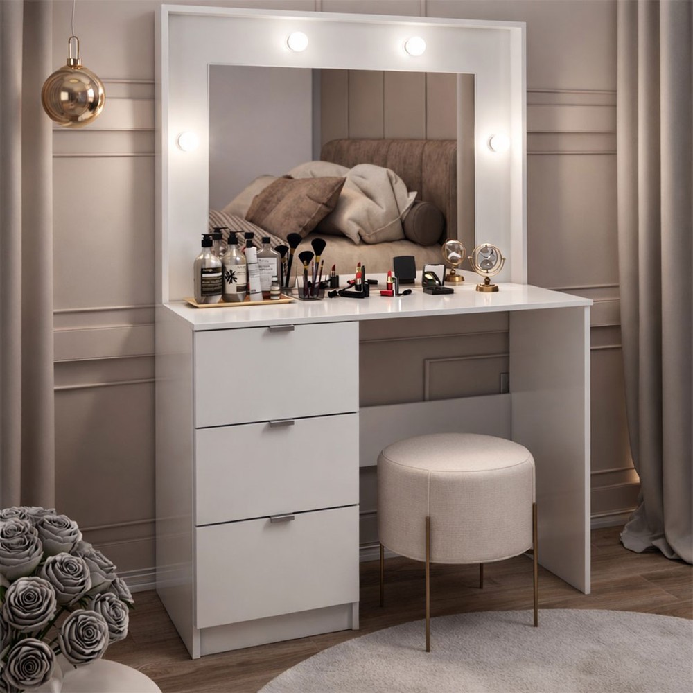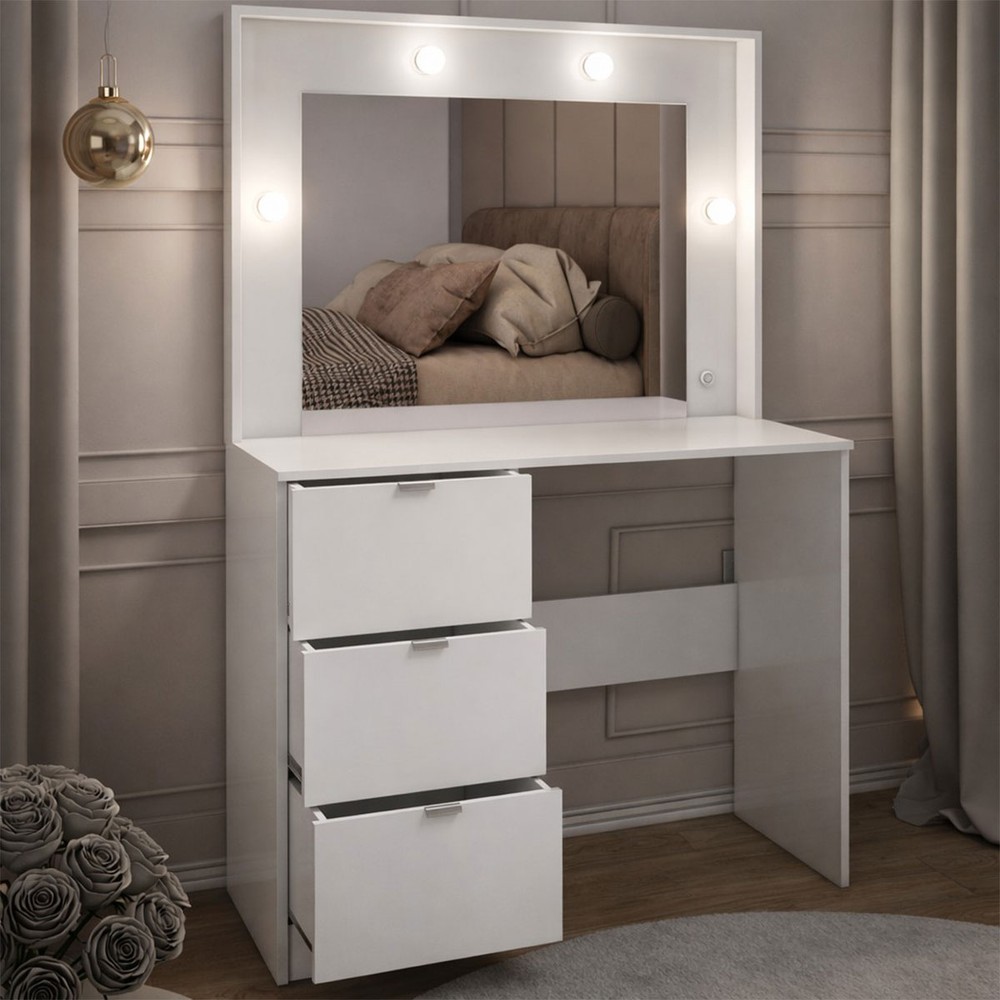 O(a) Penteadeira Luna 3 Gavetas com Espelho Branco - Panorama Móveis é produzido em MDP na escala de brilho Brilho e Semi-Fosco, e possui um grau de dificuldade de montagem: Médio.