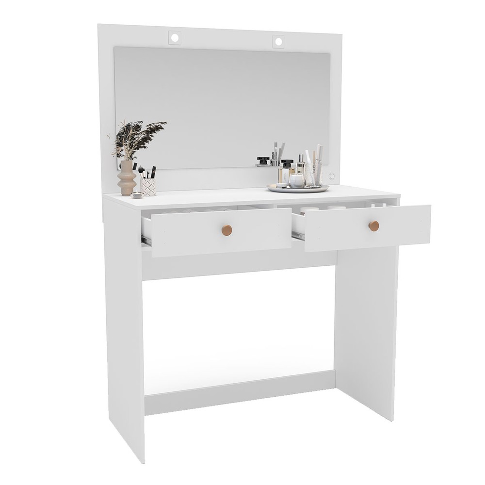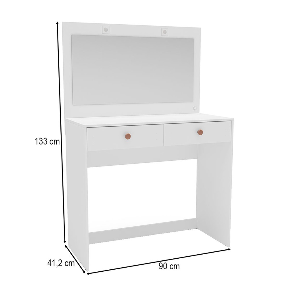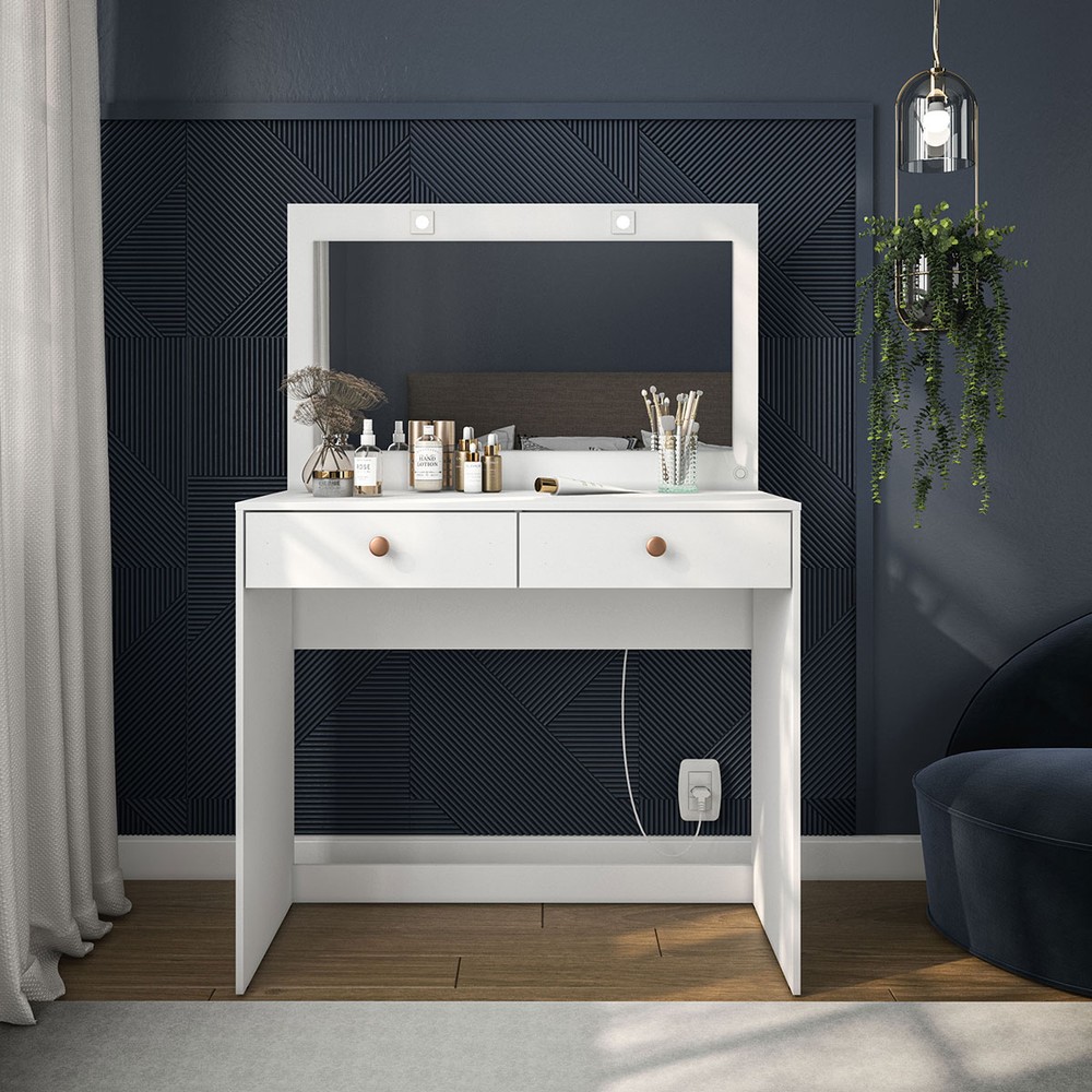 Penteadeira Valence 2 Gavetas com Espelho e Led Branco - Politorno