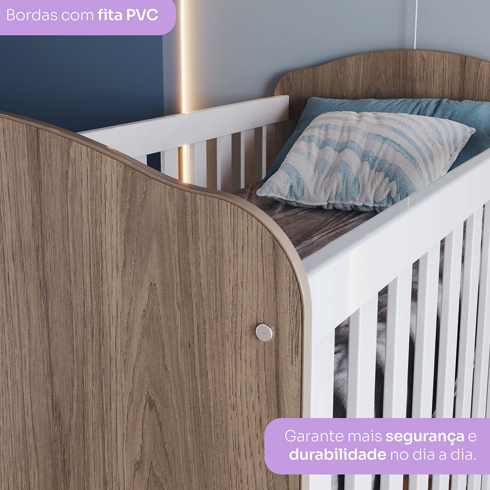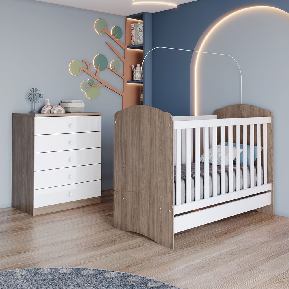 Quarto de Bebê Completo Bala de Menta 5 Gavetas Rústico/Branco - Henn