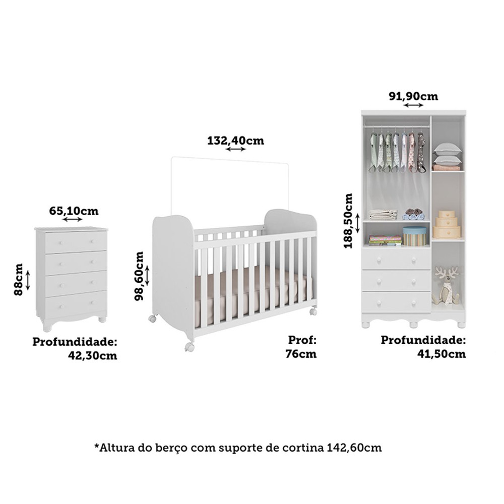 O(a) Quarto de Bebê Completo Junior Uli 3 Portas 7 Gavetas 100% Mdf Branco Brilho - Móveis Peroba é produzido em 100% MDF na escala de brilho Brilhante e Semi-Brilho, e possui um grau de dificuldade de montagem: Difícil.