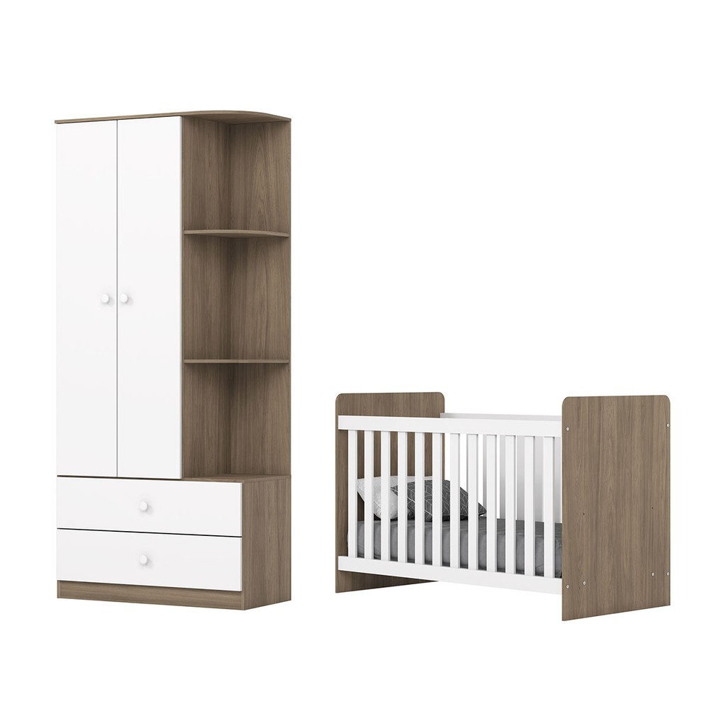 Quarto de Bebê Completo Labirinto 2 Portas 2 Gavetas Rústico/Branco - Henn