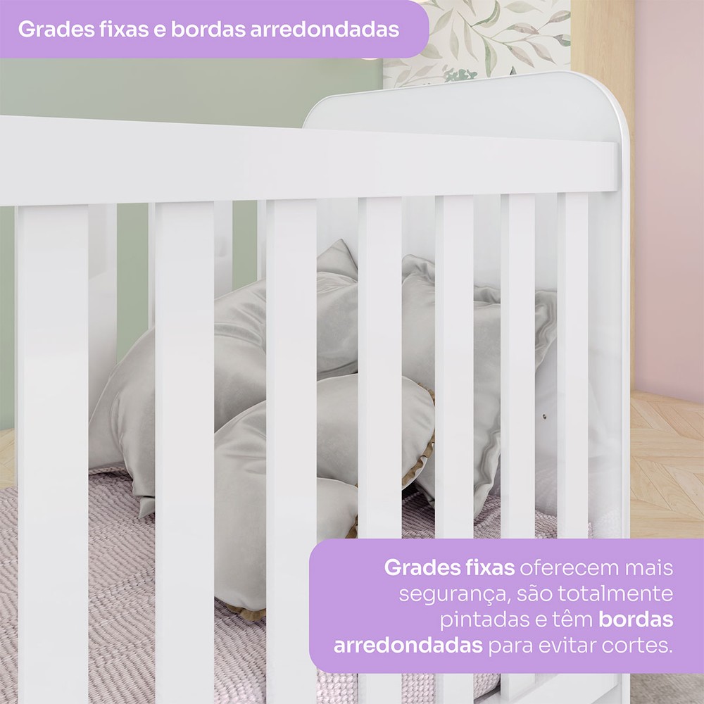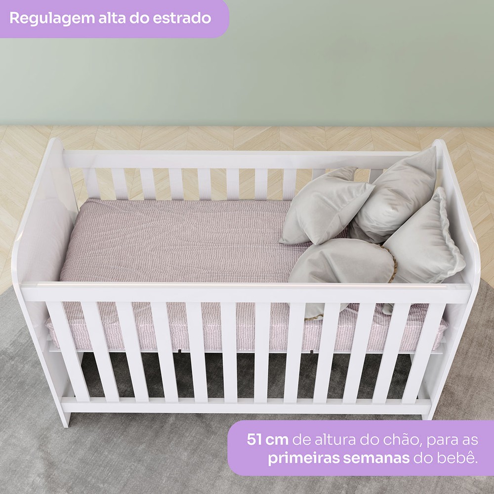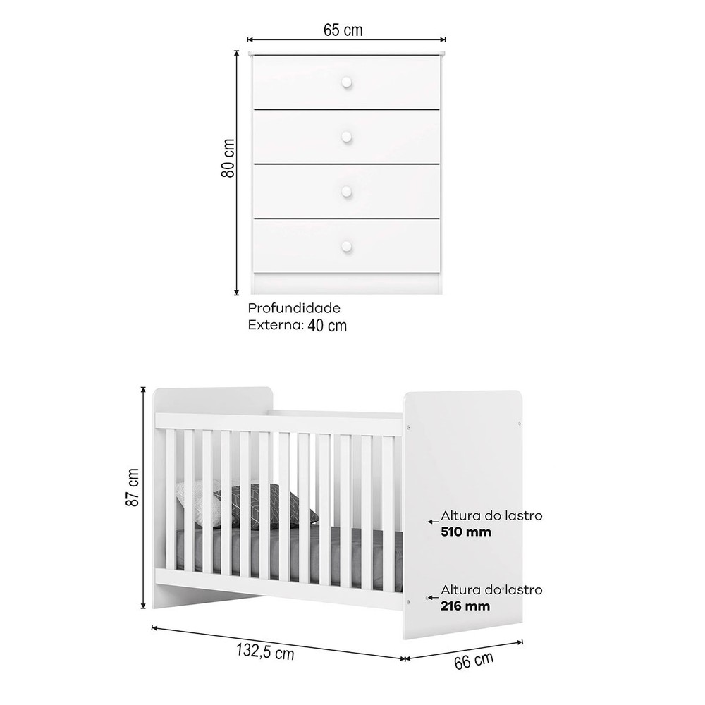 O que compõe Berço (A x L x P) : 87 x 132,5 x 66cm Cômoda (A x L x P) : 80 x 65 x 40cm