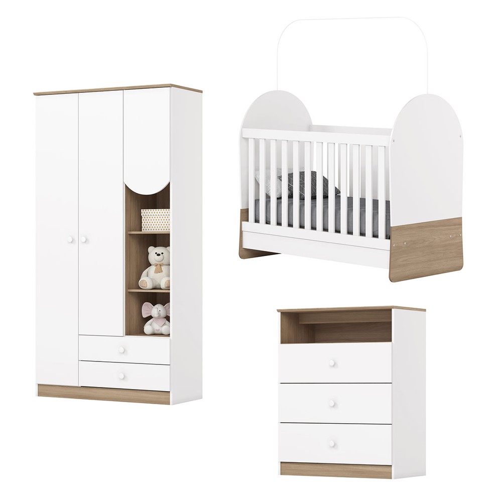 Quarto de Bebê Completo Magia 3 Portas 5 Gavetas Ie165-190 Branco/Jequitibá - Henn