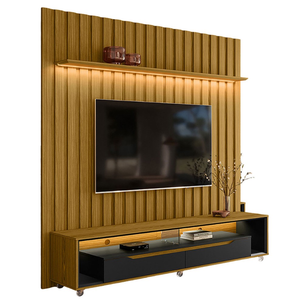 O(a) Rack com Painel para TV Até 70 Polegadas Perla 2 Gavetas 1 Prateleira Cedro/Preto - Pnr Móveis é produzido em MDP/MDF na escala de brilho Brilhante e Semi-Brilho, e possui um grau de dificuldade de montagem: Médio.