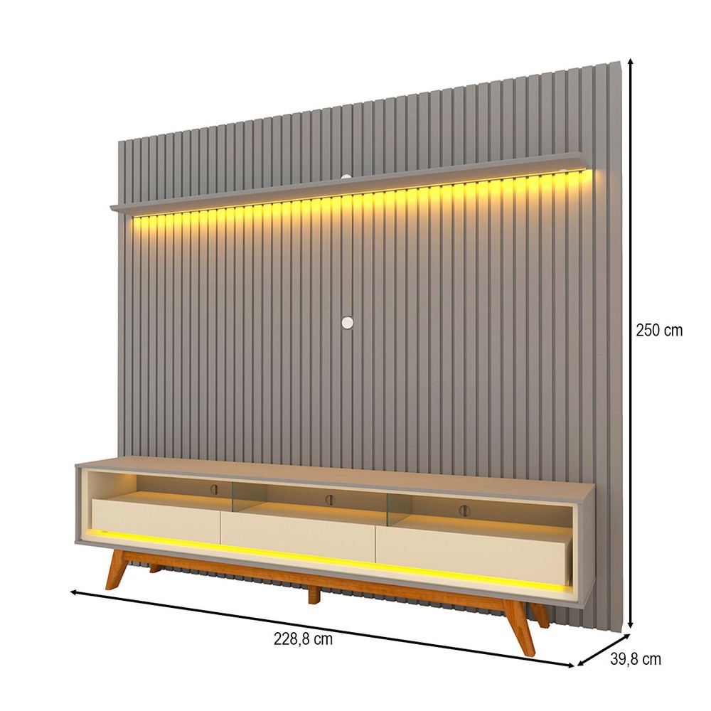 O(a) Rack com Painel para TV Até 85 Polegadas Nobre 3 Gavetas Ripado 100% Mdf com Led Cinza/Off White - Gelius é produzido em 100% MDF na escala de brilho Semi-Fosco, e possui um grau de dificuldade de montagem: Médio.