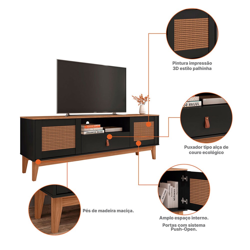 O(a) Rack para TV Até 60 Polegadas Vidigal 2 Portas 1 Gaveta Preto/Noce - Pnr Móveis é produzido em MDP na escala de brilho Semi-Brilho, e possui um grau de dificuldade de montagem: Médio.