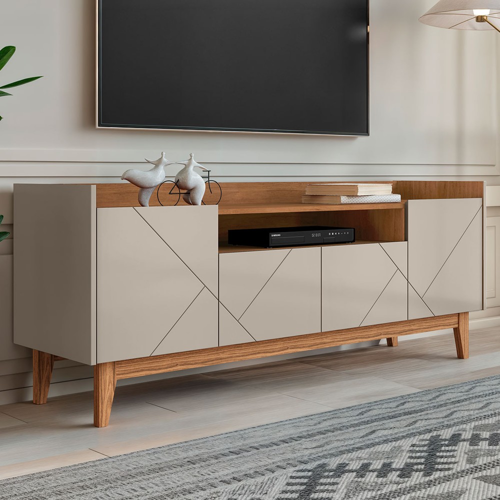 Rack para TV Até 65 Polegadas Andriely 4 Portas Off White/Cedro - Pnr Móveis