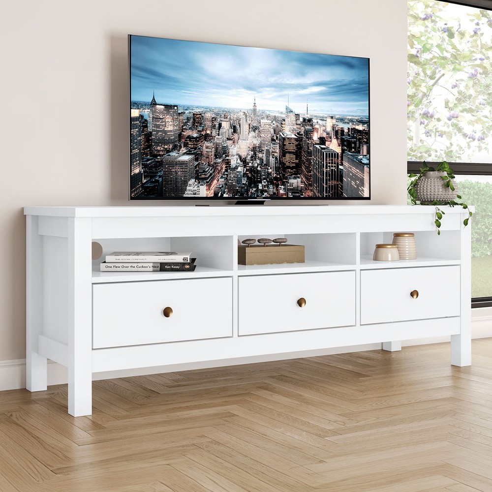 O(a) Rack para TV Até 65 Polegadas Indiana 3 Gavetas Branco - Henn é produzido em MDP/MDF na escala de brilho Fosco, e possui um grau de dificuldade de montagem: Médio.