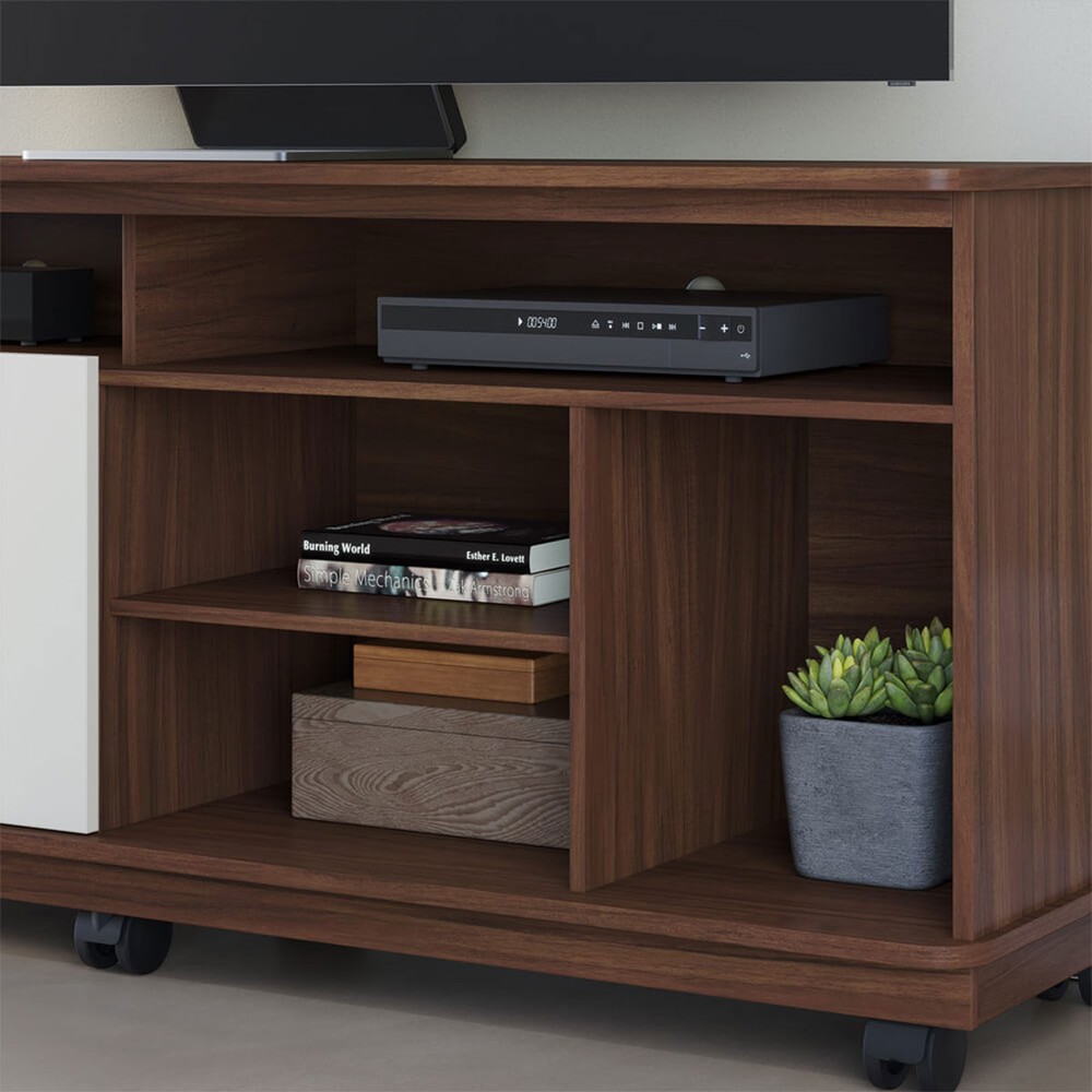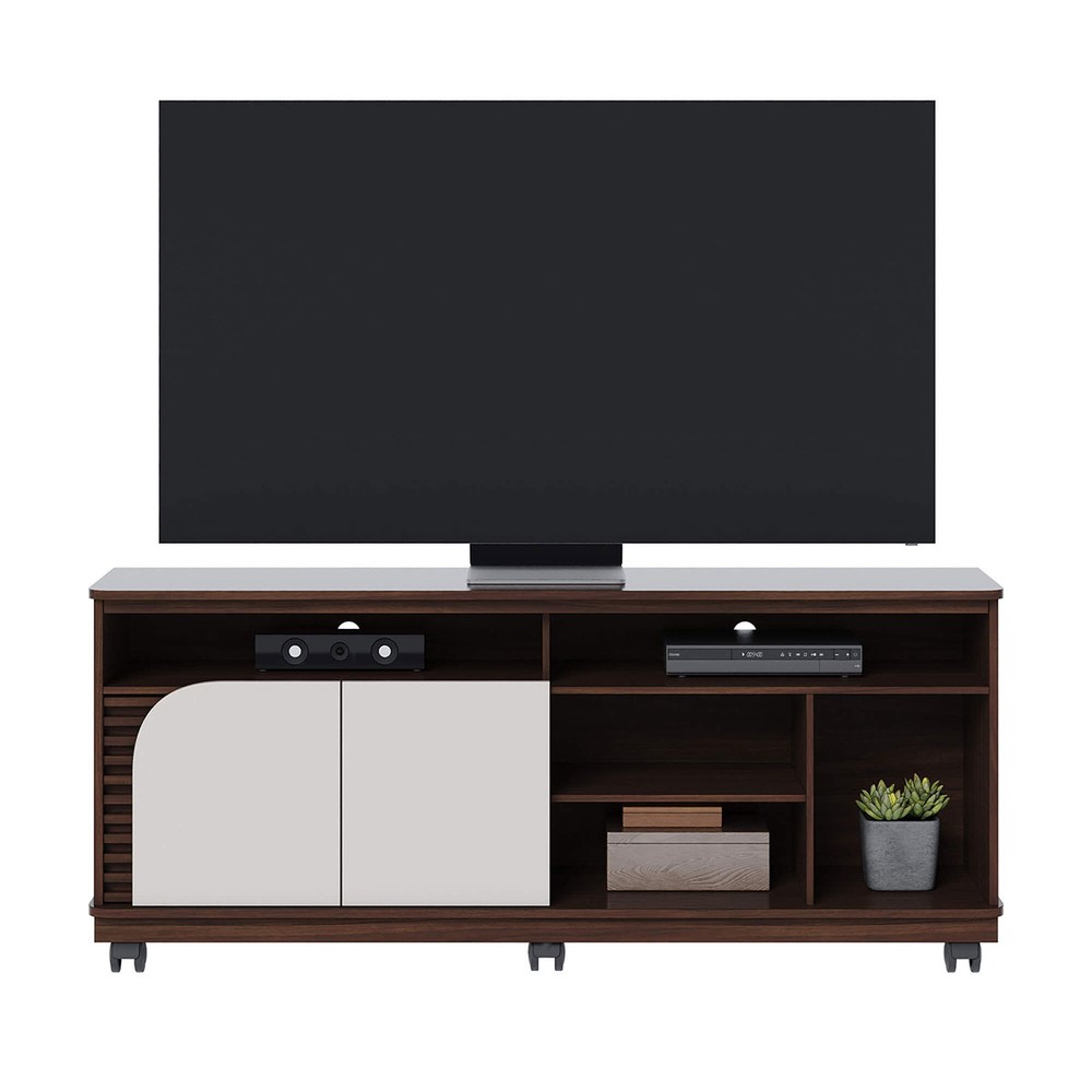 Rack para TV Até 65 Polegadas Jurerê 2 Portas Ripado Nogueira Real/Off White Matte - Colibri