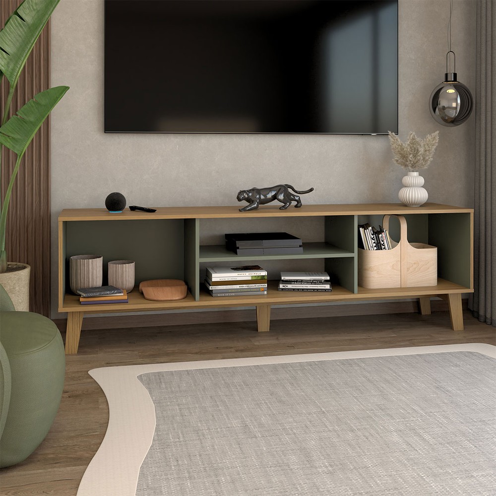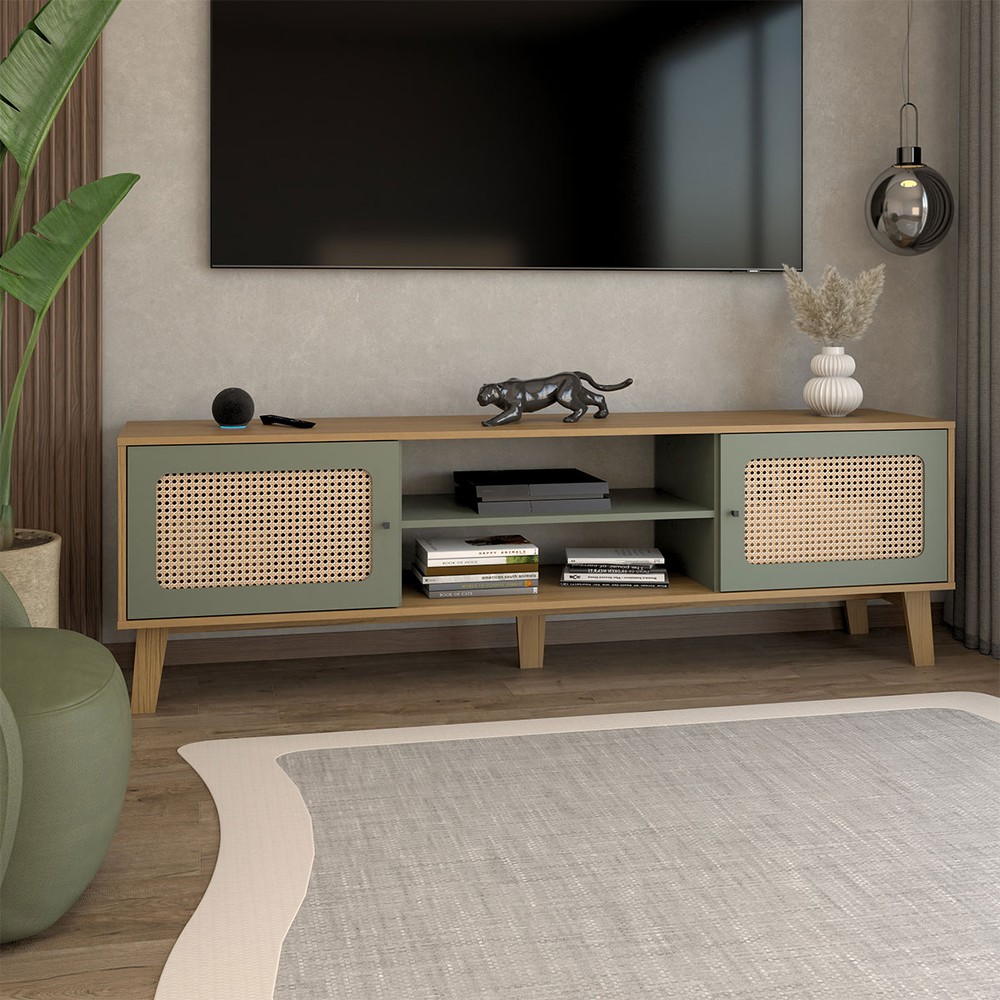 Rack para TV Até 75 Polegadas Retro 2 Portas Carvalho/Menta - Panorama Móveis