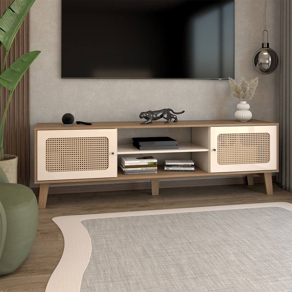 Rack para TV Até 75 Polegadas Retro 2 Portas Cinamomo/Off White - Panorama Móveis