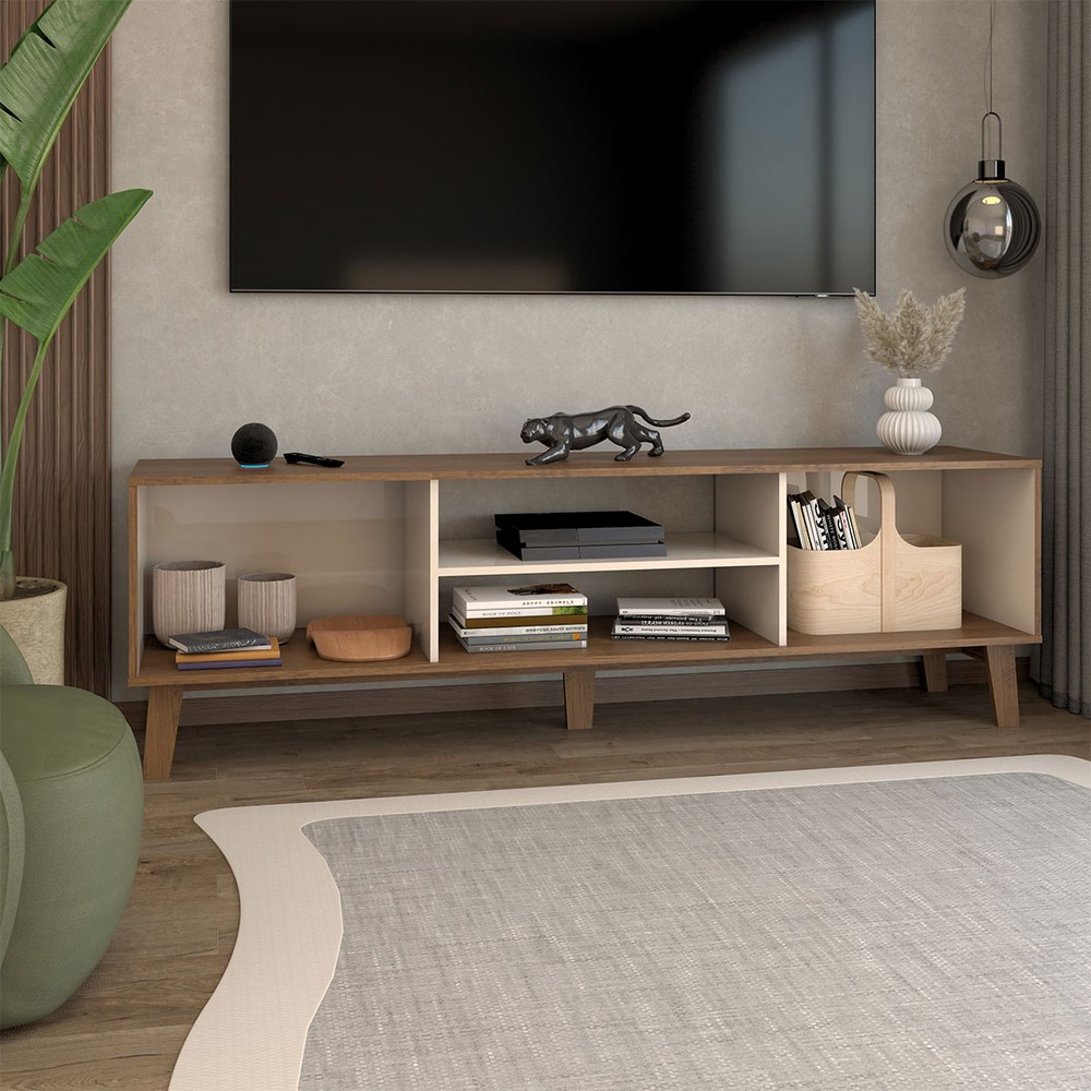 Rack para TV Até 75 Polegadas Retro 2 Portas Pinho/Off White - Panorama Móveis