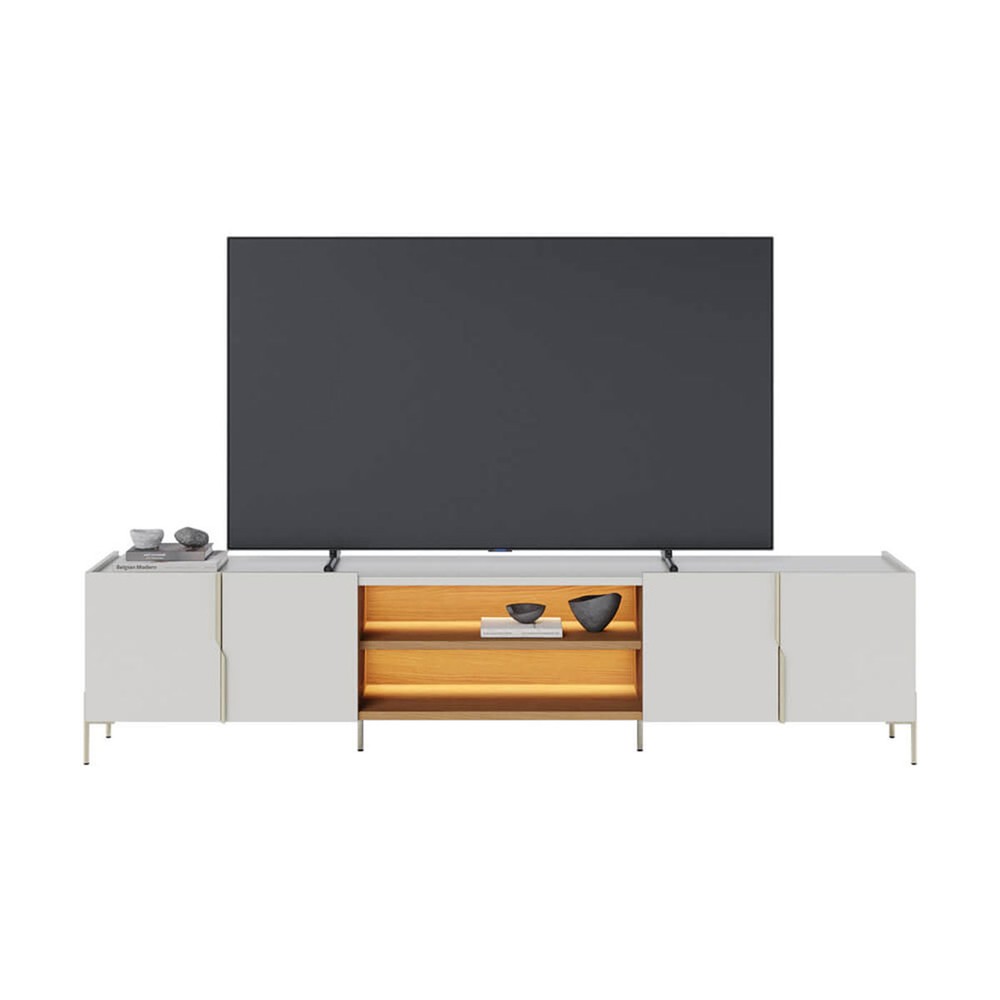 Rack para TV Até 85 Polegadas Maggiore 4 Portas com Led Off White Matte/Freijó - Colibri