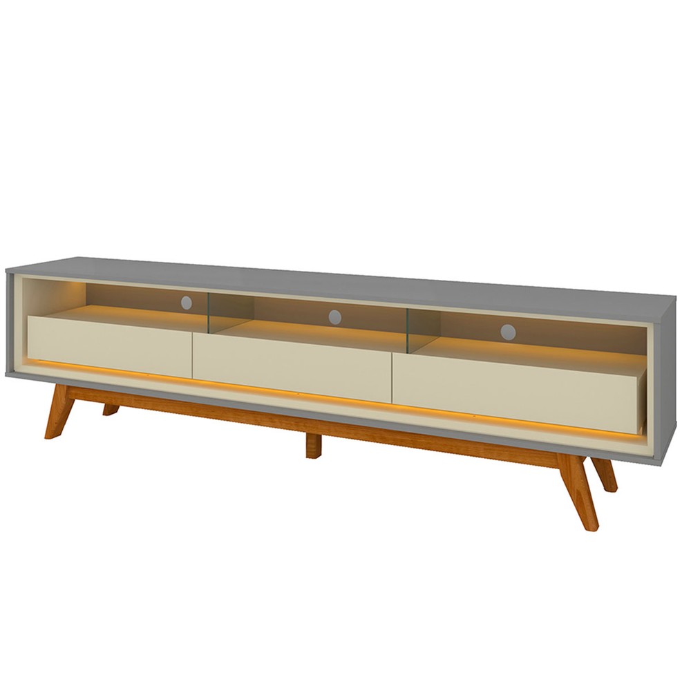 Rack para TV Até 85 Polegadas Requinte 3 Gavetas 100% Mdf com Pés e Led Cinza/Off White - Gelius