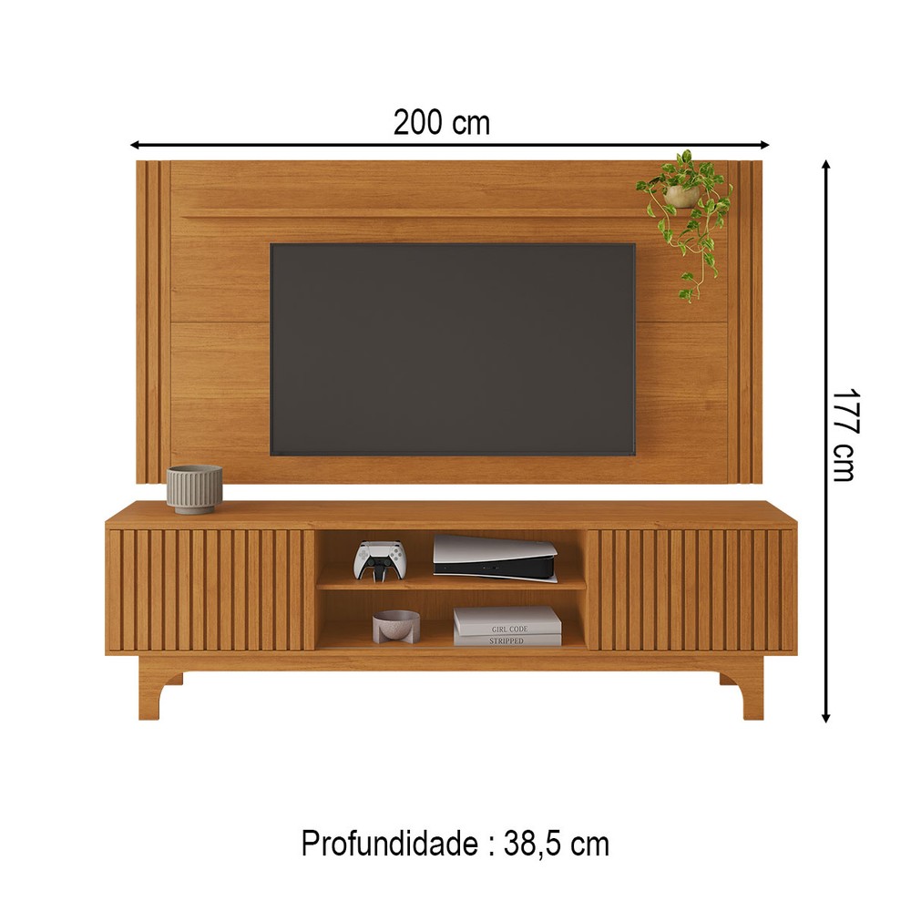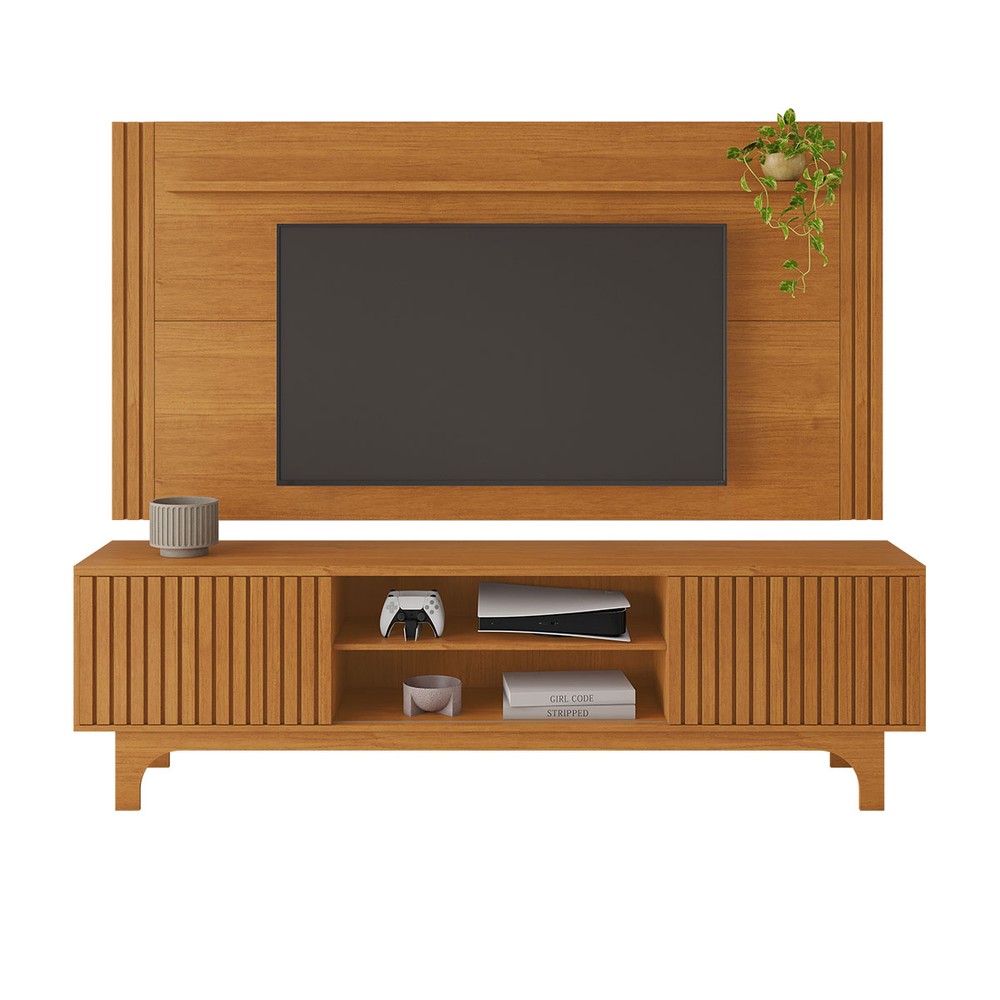 Sala de Estar Completa para TV Até 70 Polegadas Pier com Led 2 Portas 1 Prateleira Cinamomo - Pnr Móveis