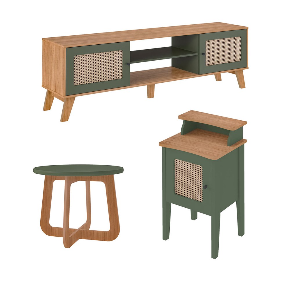 O(a) Rack para TV Até 75 Polegadas Charlotte 2 Portas Carvalho/Menta - Artely Móveis é produzido em MDP na escala de brilho Fosco, e possui um grau de dificuldade de montagem: Médio.