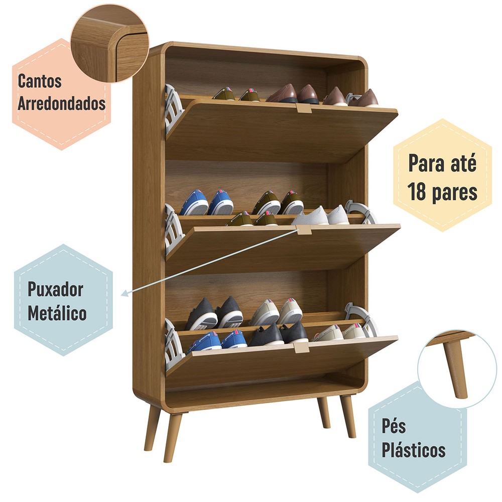 Sapateira Curve 3 Portas Carvalho Xingu - Completa Móveis