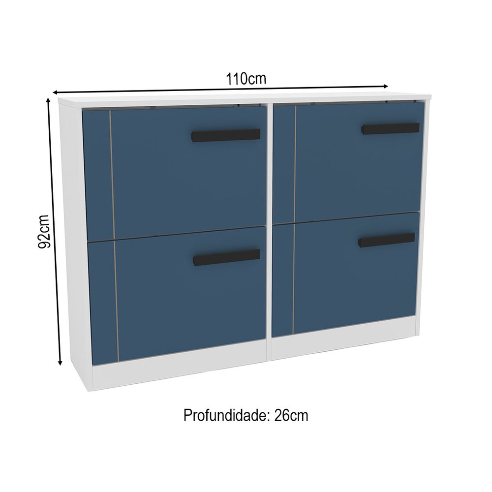 O(a) Sapateira Lisboa 4 Portas Azul/Branco - Politorno é produzido em MDP na escala de brilho Semi-Fosco, e possui um grau de dificuldade de montagem: Médio.