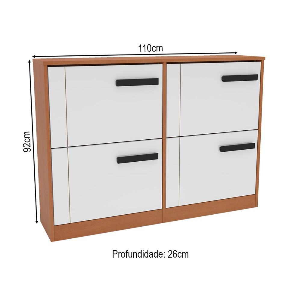 O(a) Sapateira Lisboa 4 Portas Branco/Freijó - Politorno é produzido em MDP na escala de brilho Semi-Fosco, e possui um grau de dificuldade de montagem: Médio.