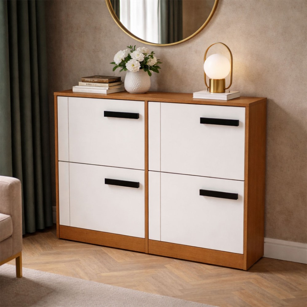 Sapateira Lisboa 4 Portas Branco/Freijó - Politorno