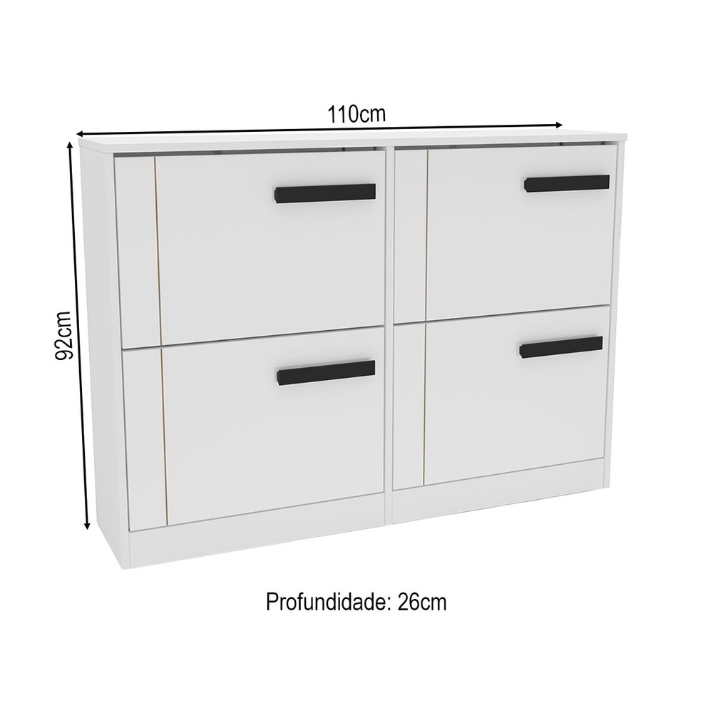 O(a) Sapateira Lisboa 4 Portas Branco - Politorno é produzido em MDP na escala de brilho Semi-Fosco, e possui um grau de dificuldade de montagem: Médio.