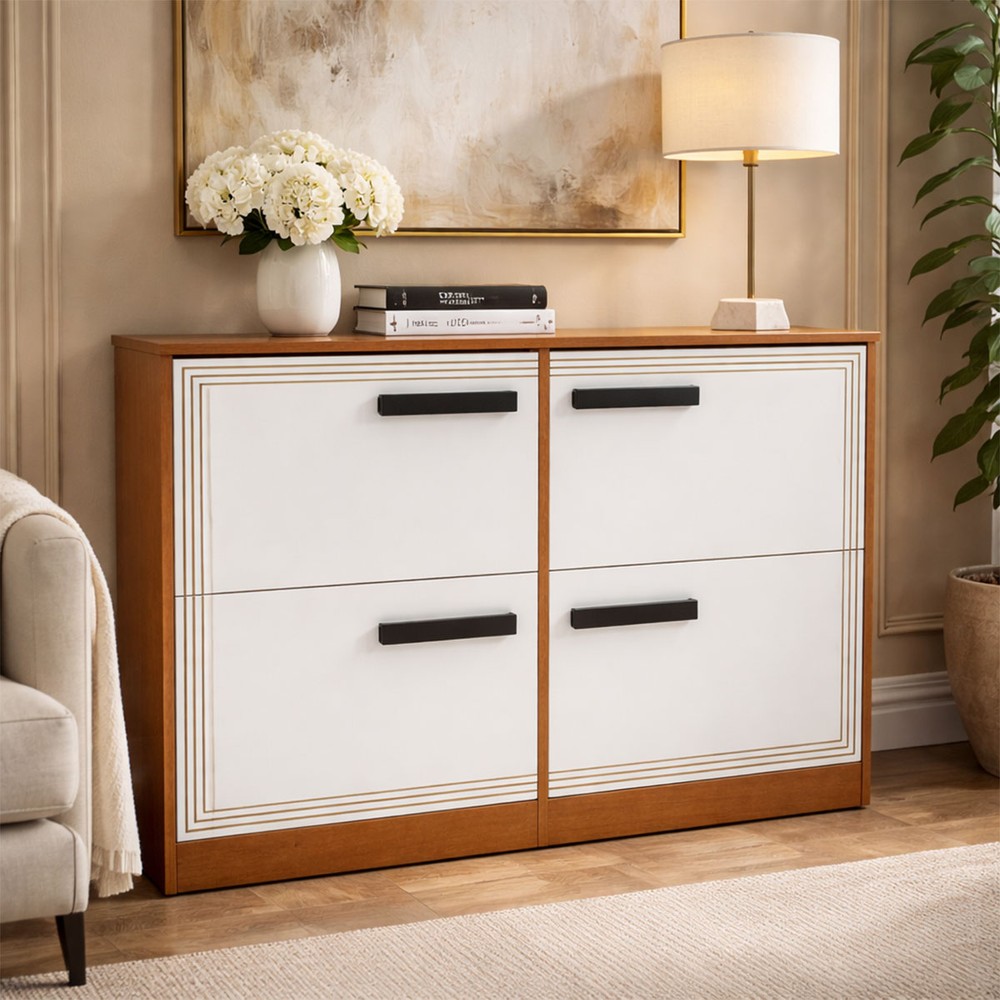 Sapateira Valência 4 Portas Branco/Freijó - Politono