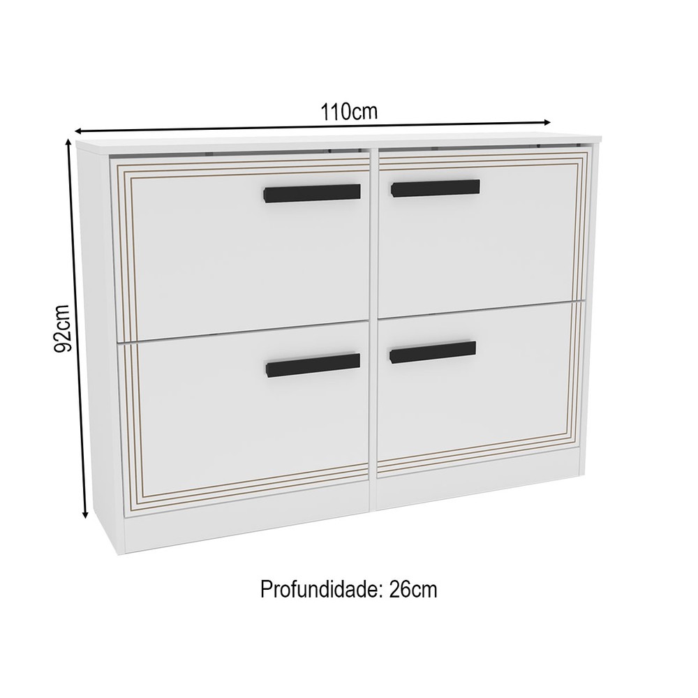 O(a) Sapateira Valência 4 Portas Branco - Politono é produzido em MDP na escala de brilho Semi-Fosco, e possui um grau de dificuldade de montagem: Médio.