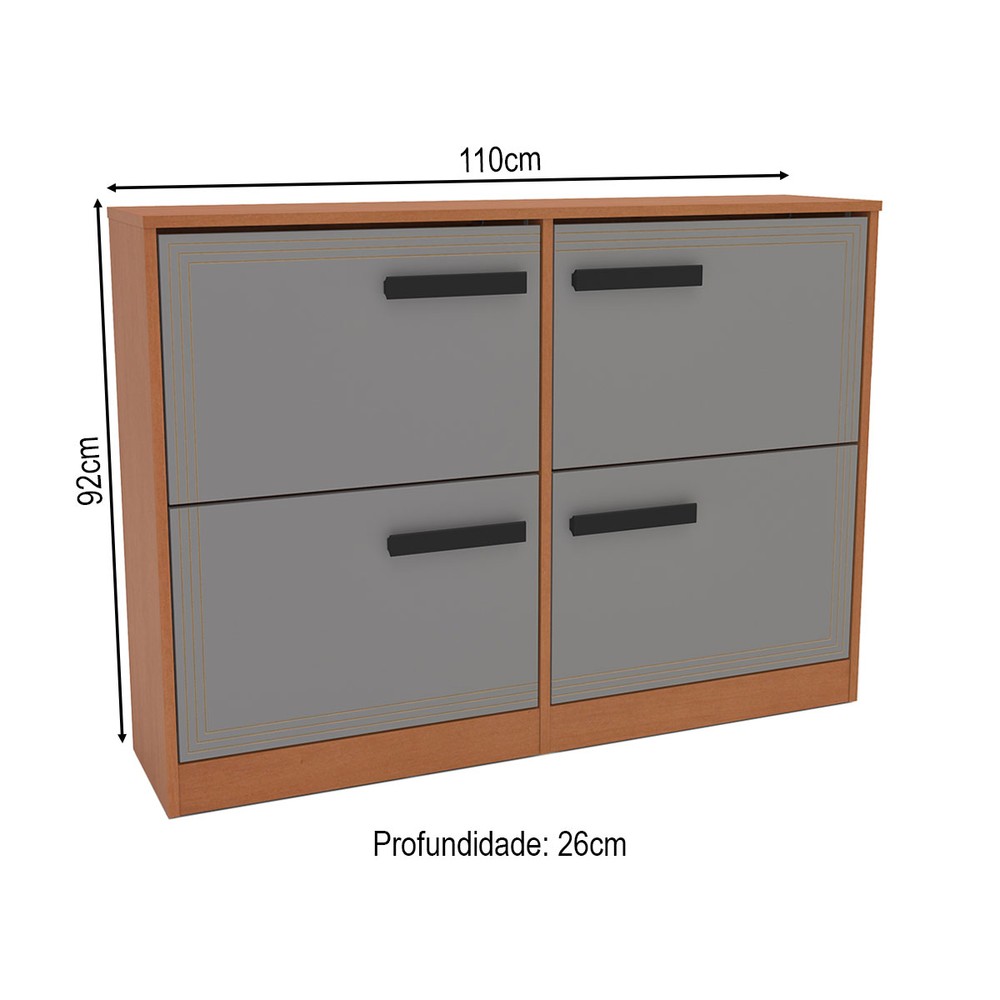 Sapateira Valência 4 Portas Cinza/Freijó - Politorno