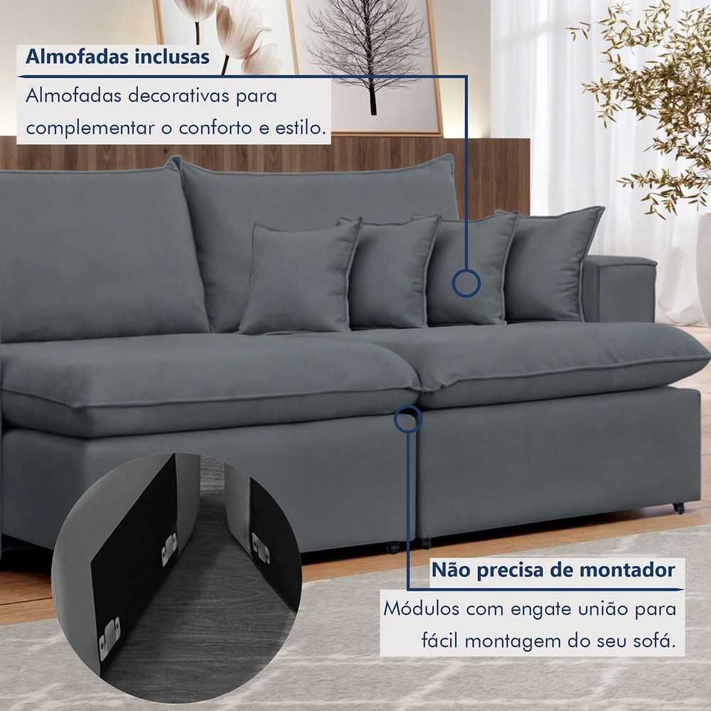 O(a) Sofá 2 Lugares Barcelona Retrátil Veludo/Cinza - Celflex Colchoes é produzido em Eucalipto na escala de brilho Não Possui, e possui um grau de dificuldade de montagem: Médio.